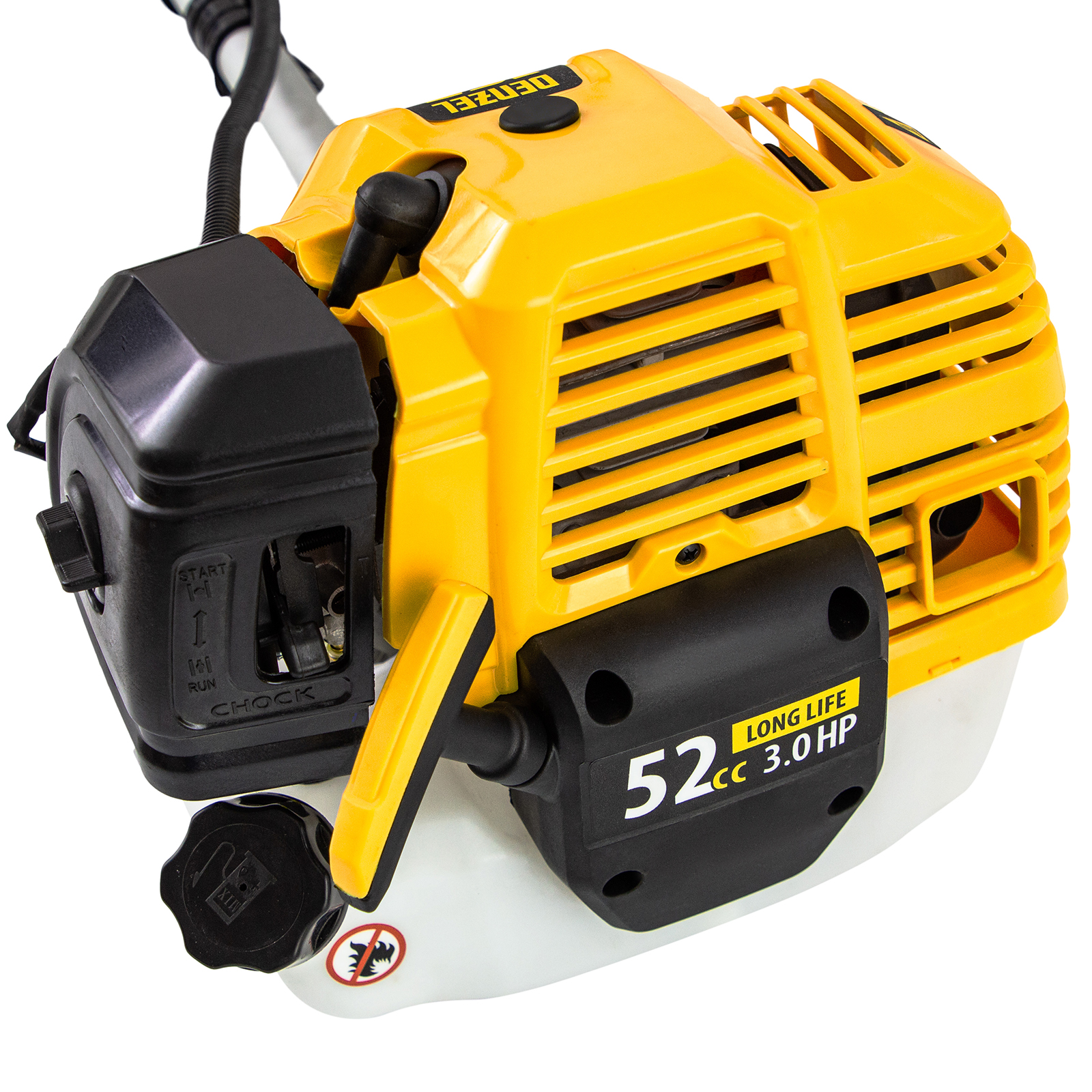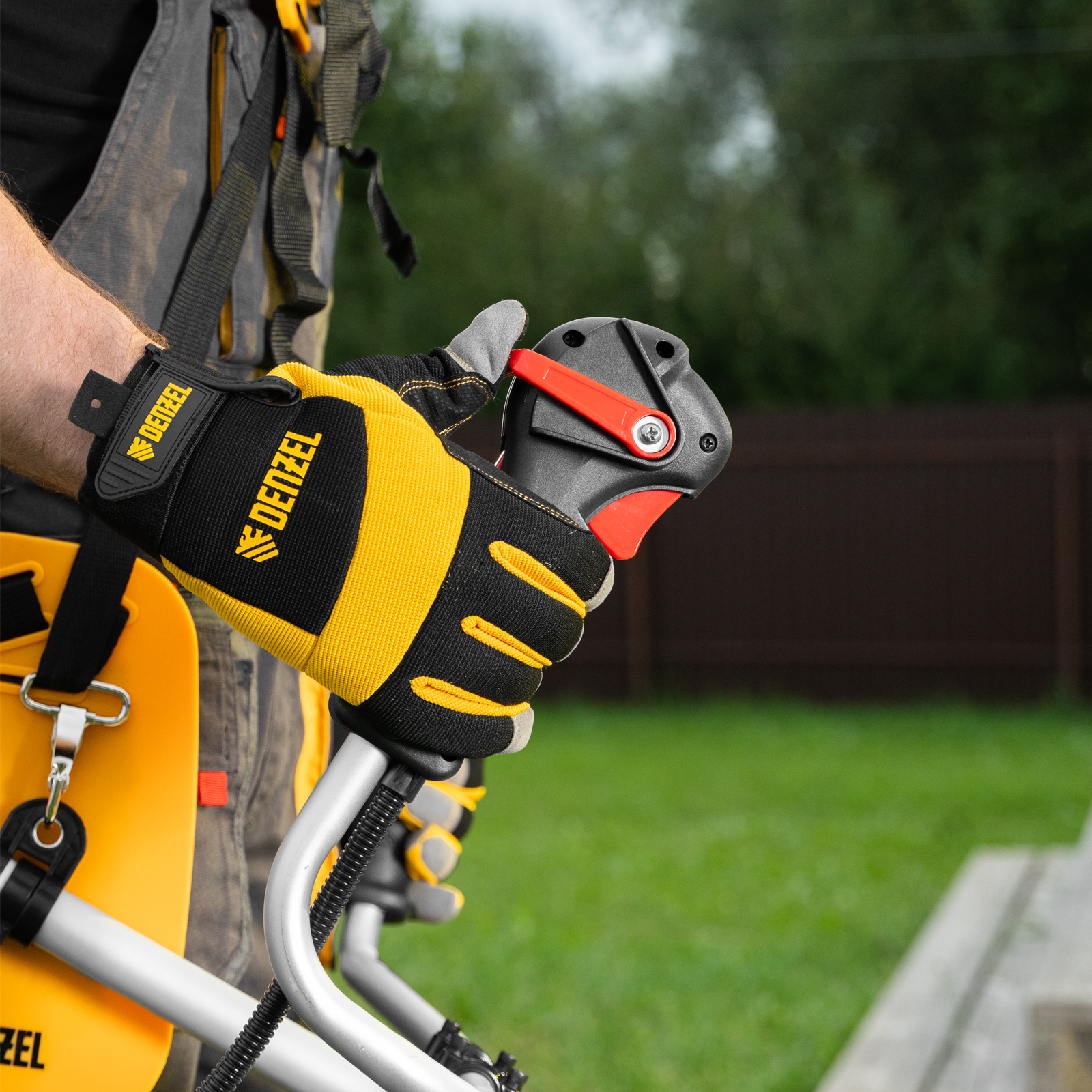 Бензиновый триммер Denzel DT-52 96226 оснащен экономичным, надежным и простым в эксплуатации двигателем мощностью 3 л.с. и объемом 52 см³, имеет неразъемную штангу и поставляется комплектом из 2 частей. Оптимален для подравнивания газона, избавления от травы с жесткими древовидными стеблями (полыни, крапивы, лебеды, борщевика), а также срезания кустарника и молодых побегов деревьев со стволами диаметром до 10 мм. Эффективно скашивает траву в труднодоступных местах: вдоль кромок дорожек, стен строений и вокруг деревьев. В комплекте катушка с леской и пильный диск, ширина скашивания составляет 420 мм и 255 мм соответственно.