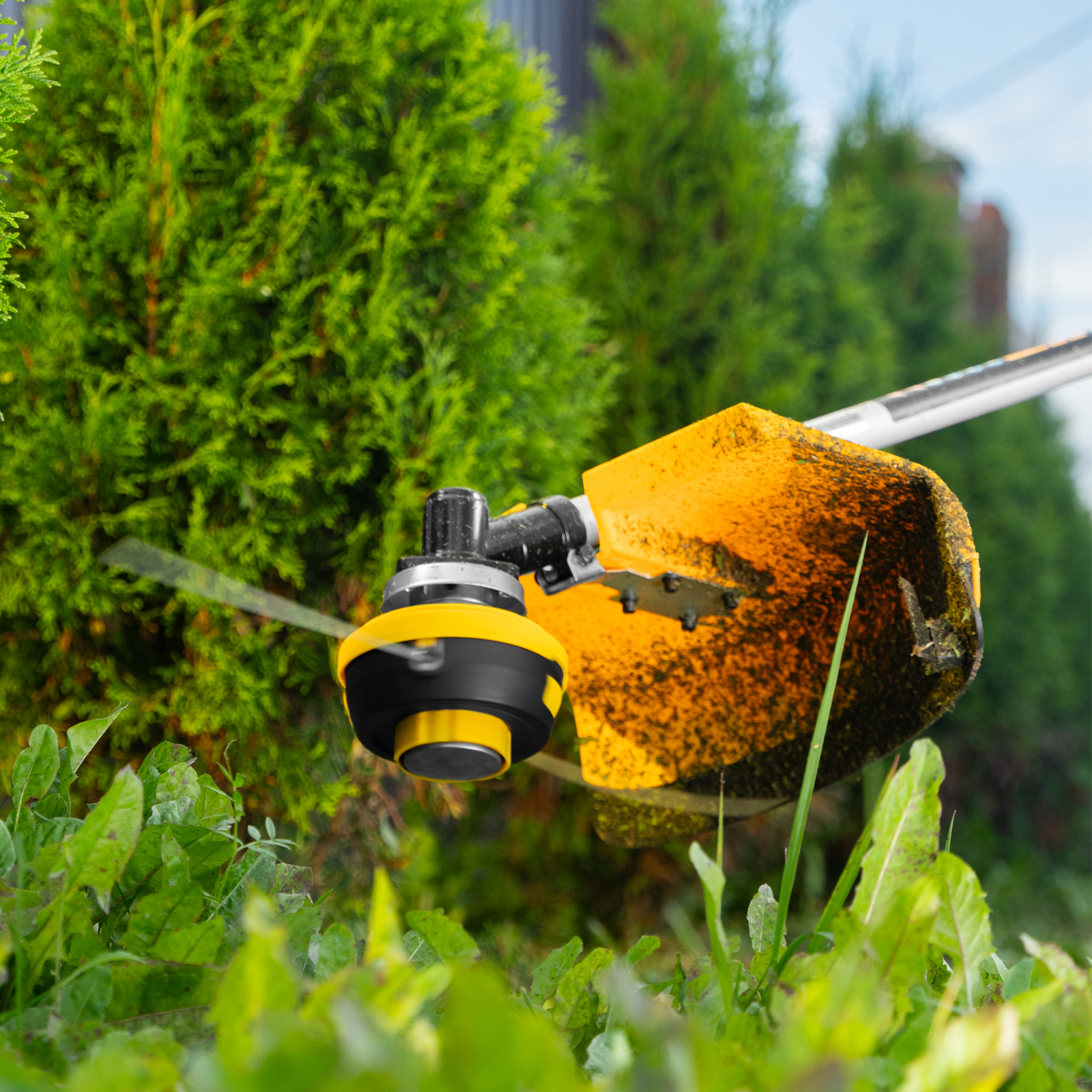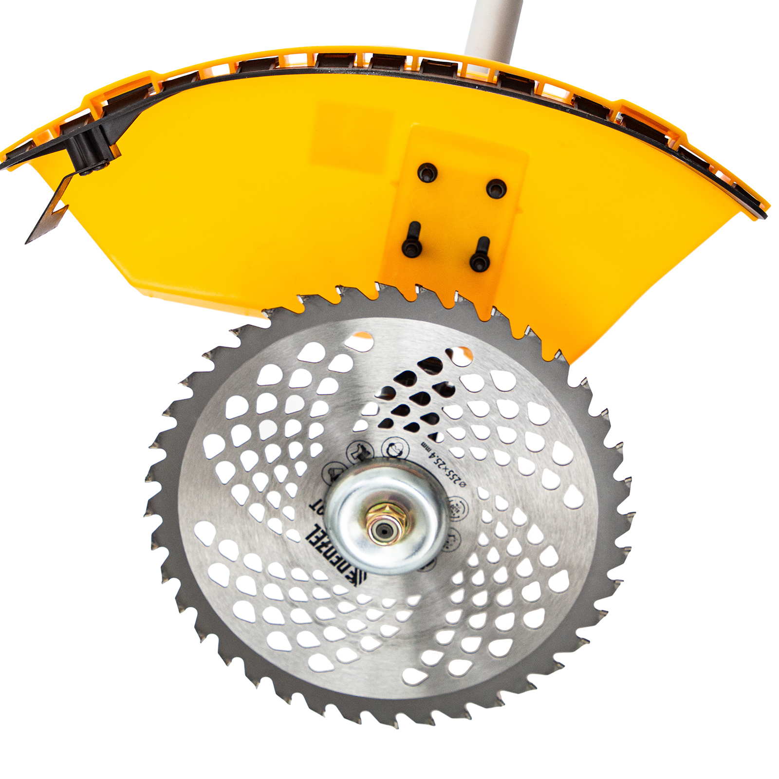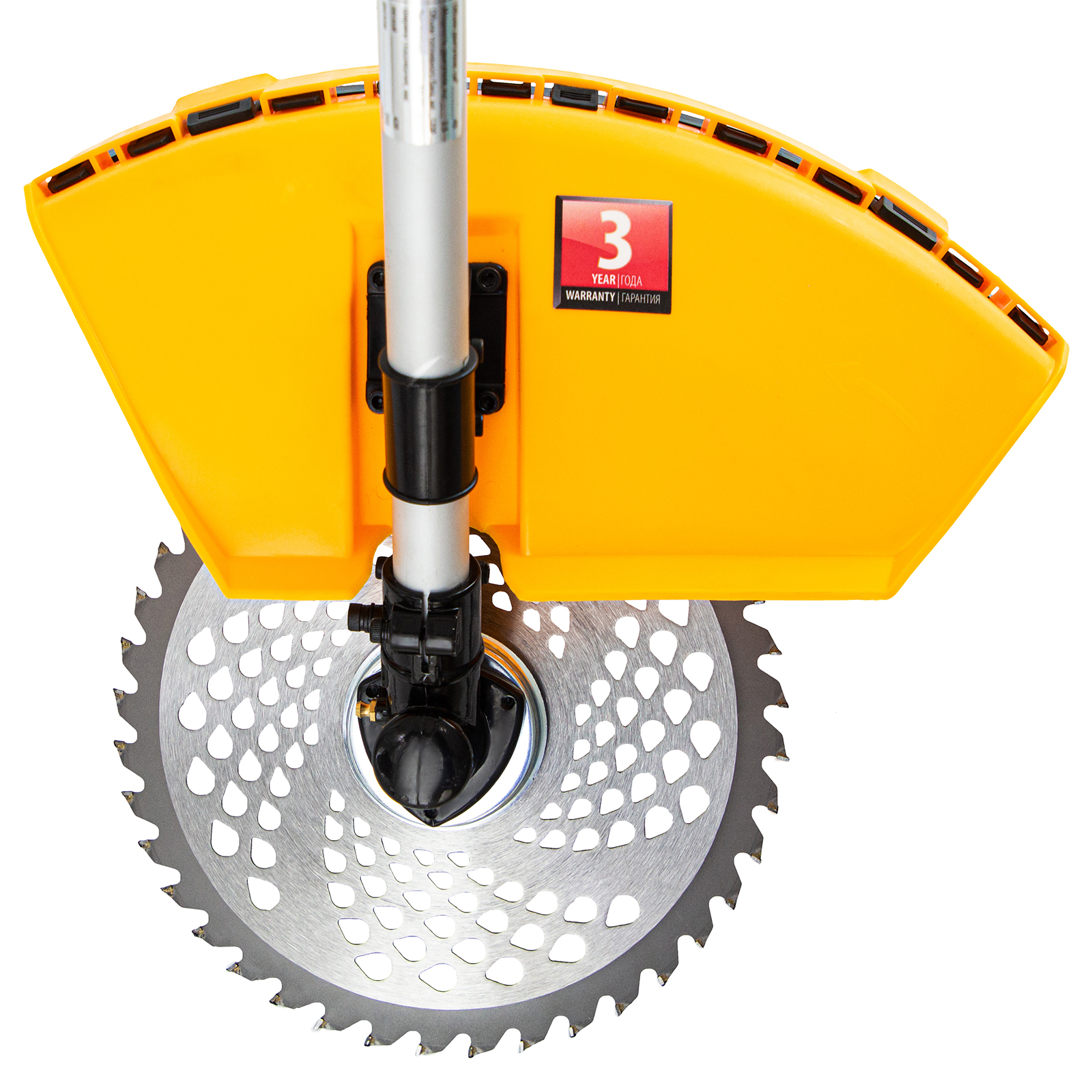 - Безопасность — кожух из прочного PA-пластика защищает пользователя от вылетающей травы, камней, веток и мелких частиц.