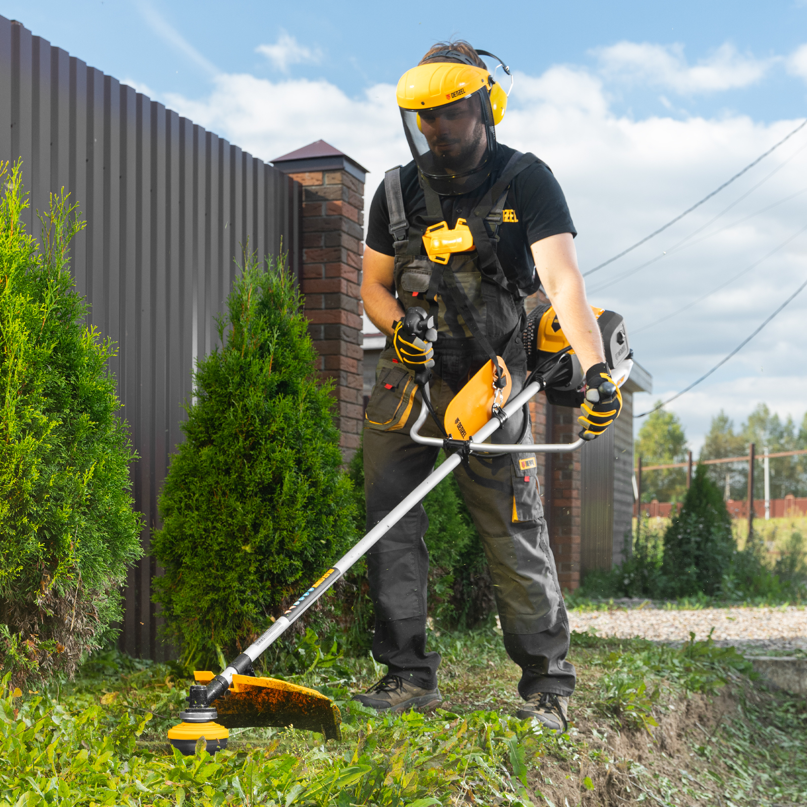 - Уменьшенная нагрузка на плечи и спину — триммер комплектуется одноплечевым ремнем с защитой бедра.