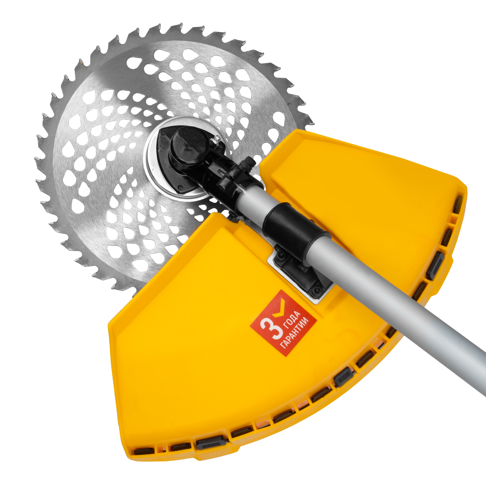 - Автоматическая подрезка лески — нож на кожухе укорачивает концы корда до нужной длины, что предотвращает перегрузку двигателя.