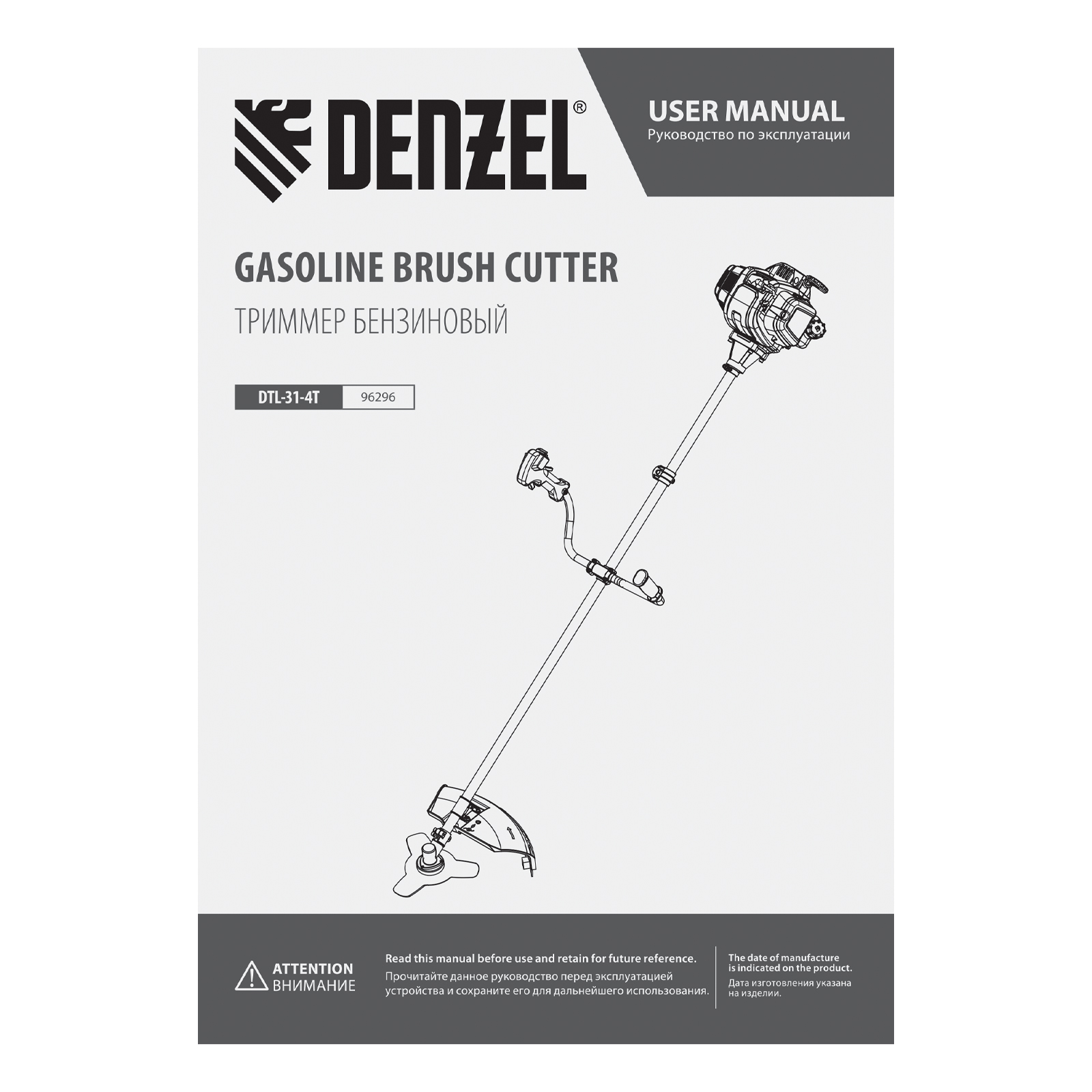 Триммер бензиновый DTL-31-4T, 4-тактный, 31 см3, неразъемная штанга, состоит из 2 частей Denzel