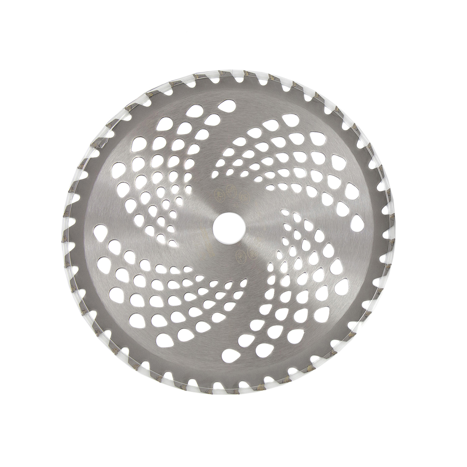 - Дополнительные возможности — можно приобрести и установить на триммер диски Denzel 96323, 96325 для быстрого удаления растительности с жесткими стеблями (полыни, крапивы, лебеды) или 96328 для скашивания молодых побегов кустарника диаметром до 3 мм.