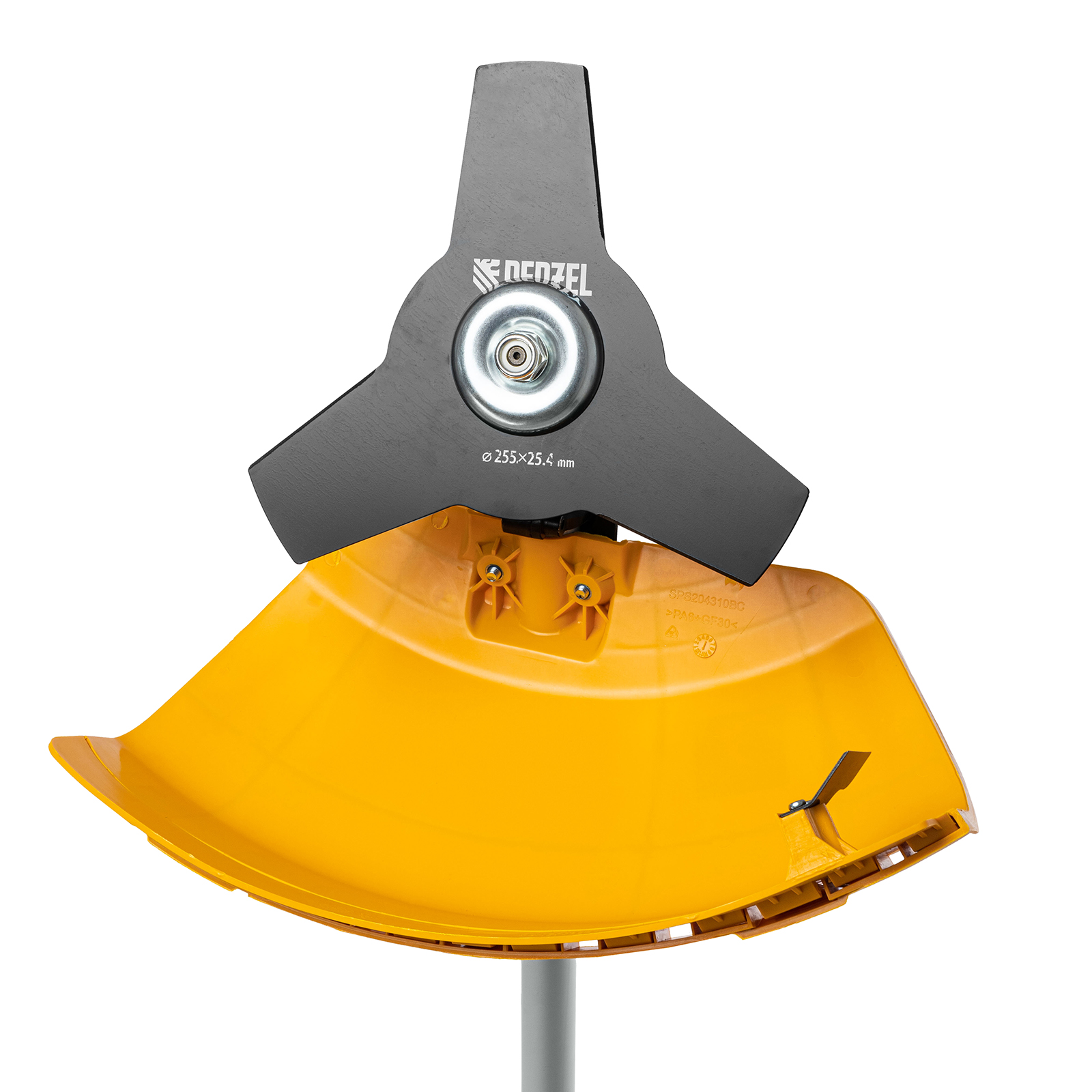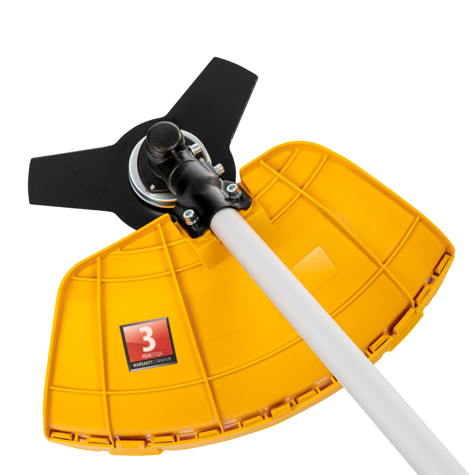 - Безопасная эксплуатация — прочный кожух, закрывающий оснастку, защищает пользователя от летящей травы, грязи и мелких камней.