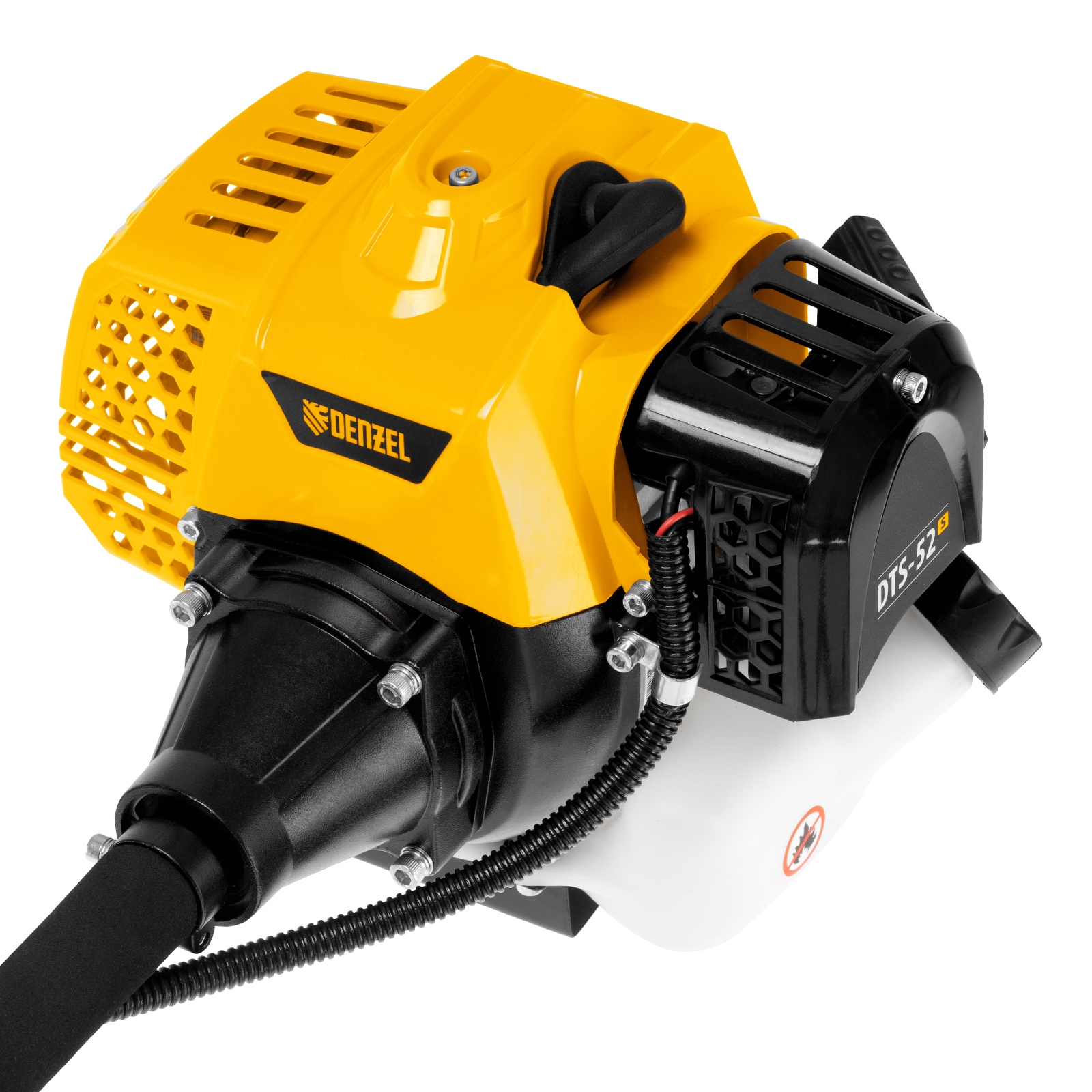 Бензиновый триммер Denzel DTS-52S 962165 с двигателем объемом 52 куб. см и разъемной штангой (состоит из 2 частей), используется для скашивания травы различных типов, в том числе с жесткими стеблями (полыни, крапивы, лебеды). Комплектуется двумя режущими оснастками — усиленной катушкой с леской и трехлопастным стальным ножом. Ширина скашивания леской составляет 42 см, а ножом — 25,5 см.,Двухтактный бензиновый двигатель мощностью 3 л.с. обеспечивает эффективное решение поставленных задач и полную автономность. Работать можно даже в самых отдаленных участках сада, не заботясь о наличии сети электропитания.