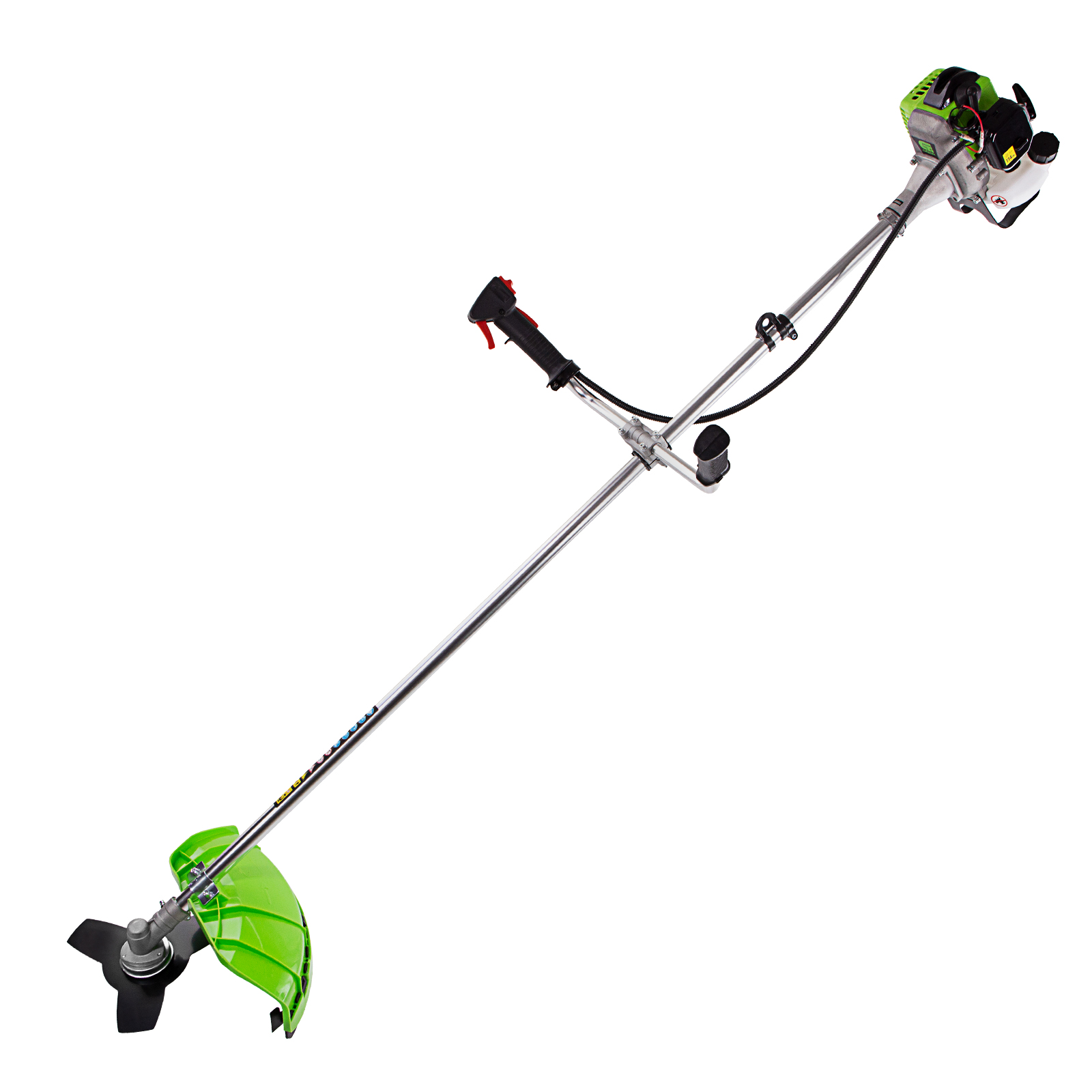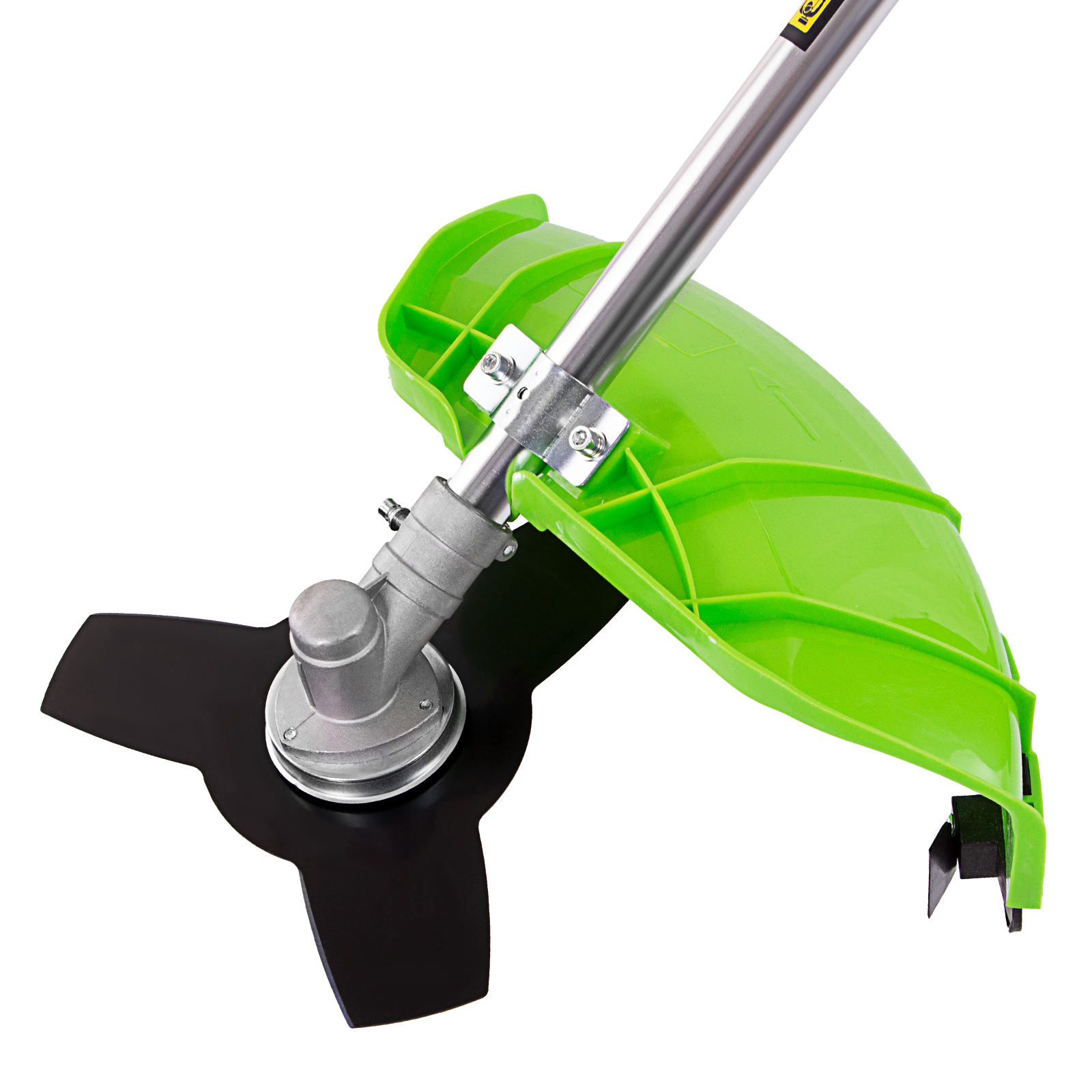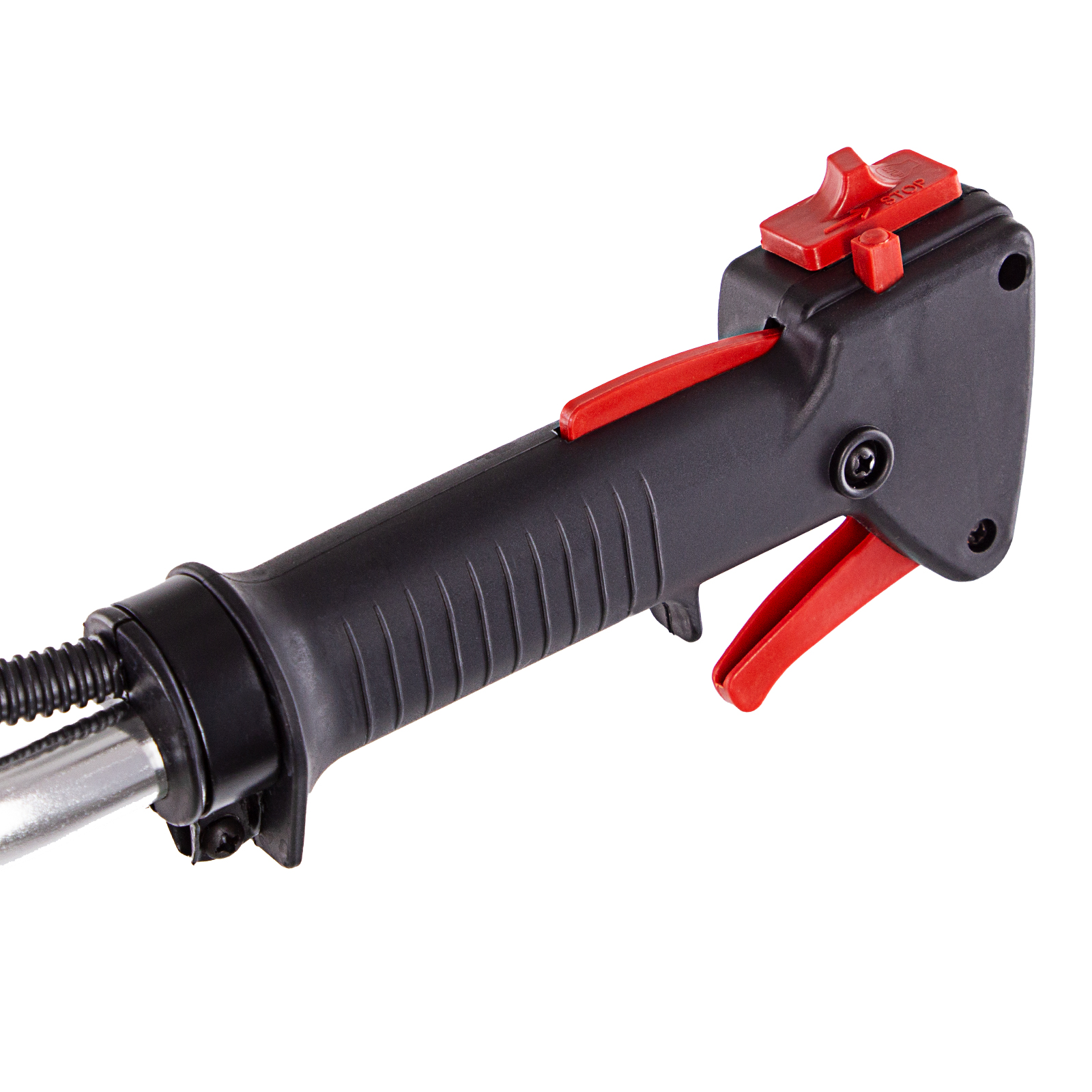 Защита от летящей травы и веток — на штанге надежно закреплен прочный пластиковый кожух.
