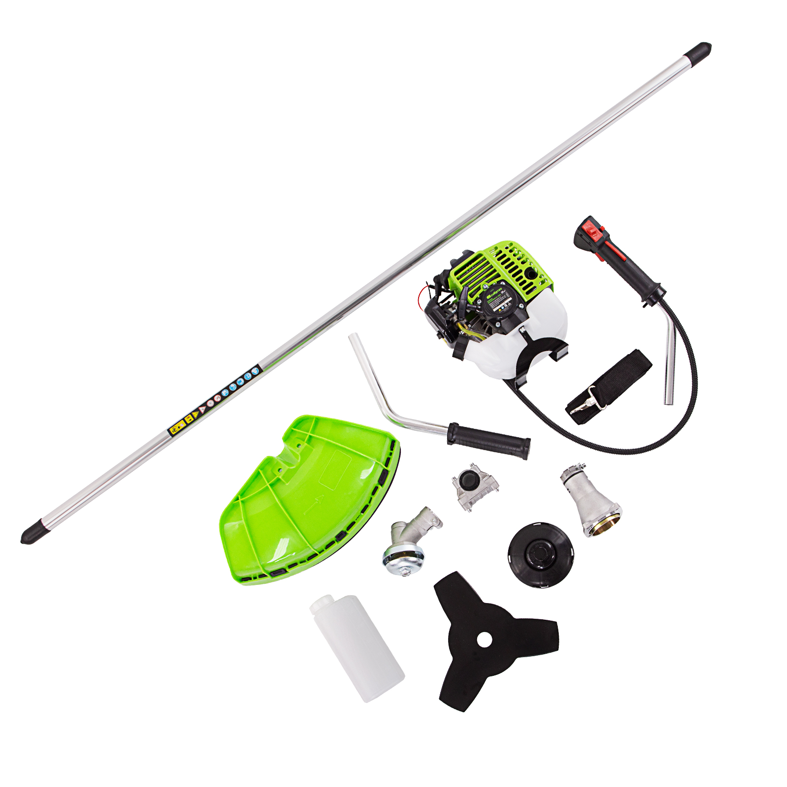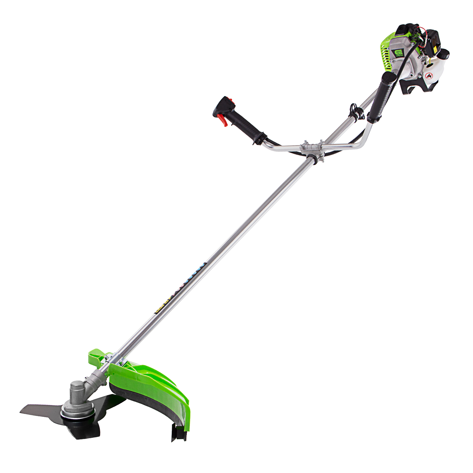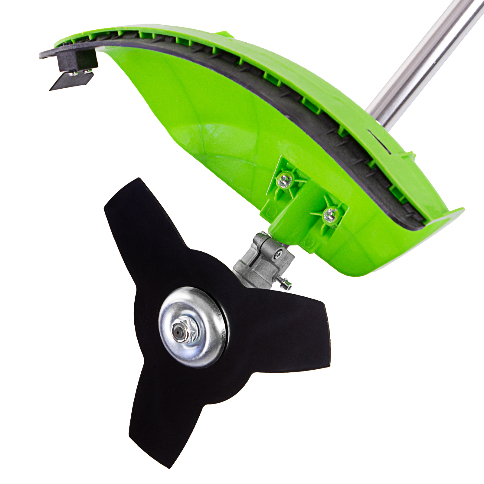 Защита от летящей травы и веток — на штанге надежно закреплен прочный пластиковый кожух.