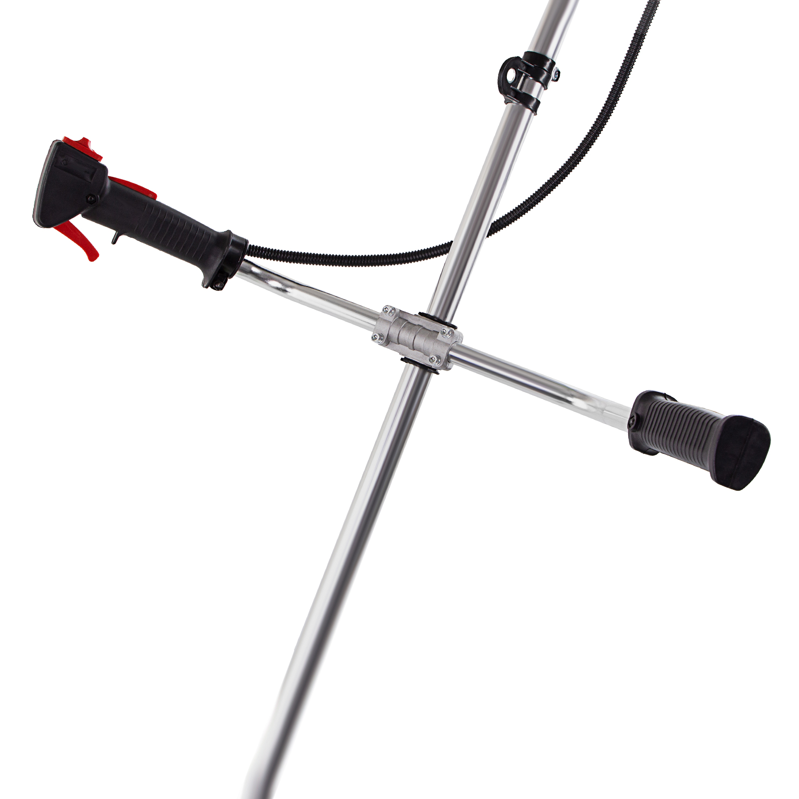 Комфорт во время работы — ручки велосипедного типа обеспечивают оптимальное положение рук, а плечевой ремень равномерно распределяет вес инструмента, поэтому мотокосу удобно удерживать и направлять.
