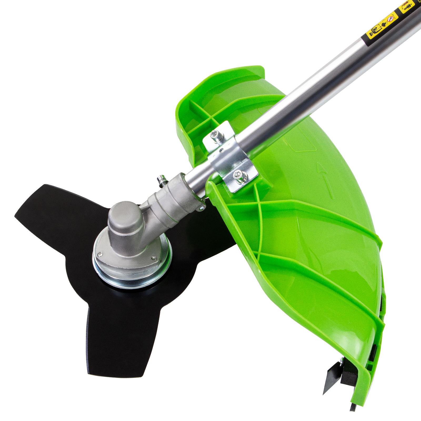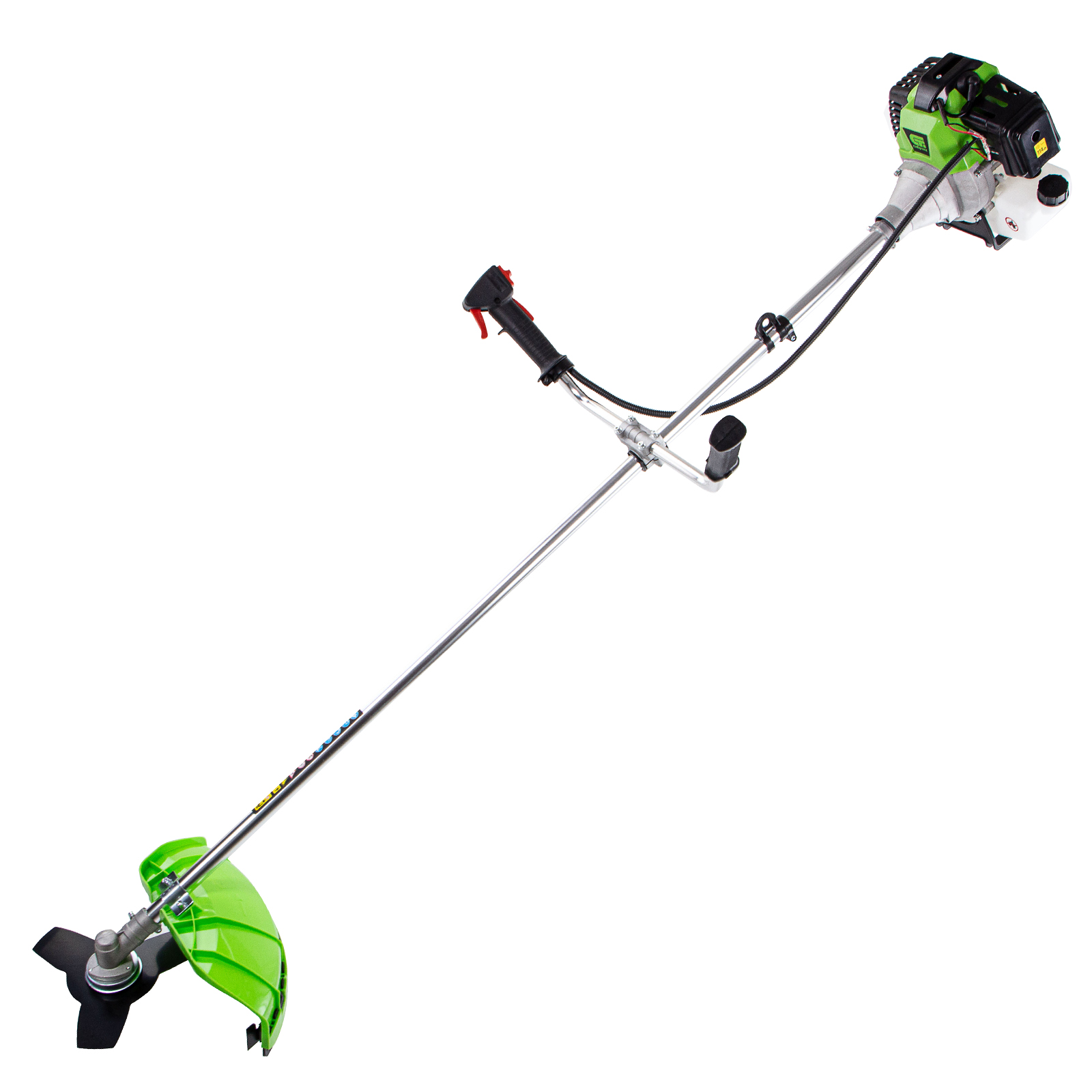 - Защита от летящей травы и веток — на штанге надежно закреплен прочный пластиковый кожух.
