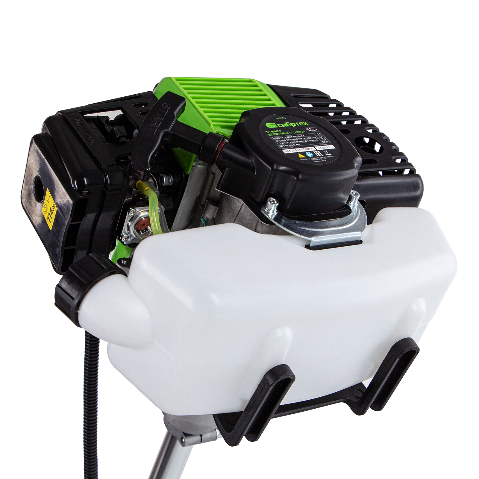 Бензиновый триммер Сибртех КС-3000Н 962555 с неразъемной штангой имеет двигатель увеличенного объема 52 куб. см, поставляется комплектом из 2 частей и предназначен для ухода за дачным участком. Используется для стрижки и скашивания травы, обработки границ газонов и борьбы с сорняками. Для эффективного решения этих задач предусмотрены катушка с леской и трехлопастный нож, легко срезающий густую траву и толстые стебли. Ширина скашивания леской составляет 42 см, ножом — 25,5 см, что в сочетании с мощностью двигателя 3 л. с. обеспечивает высокую производительность триммера.