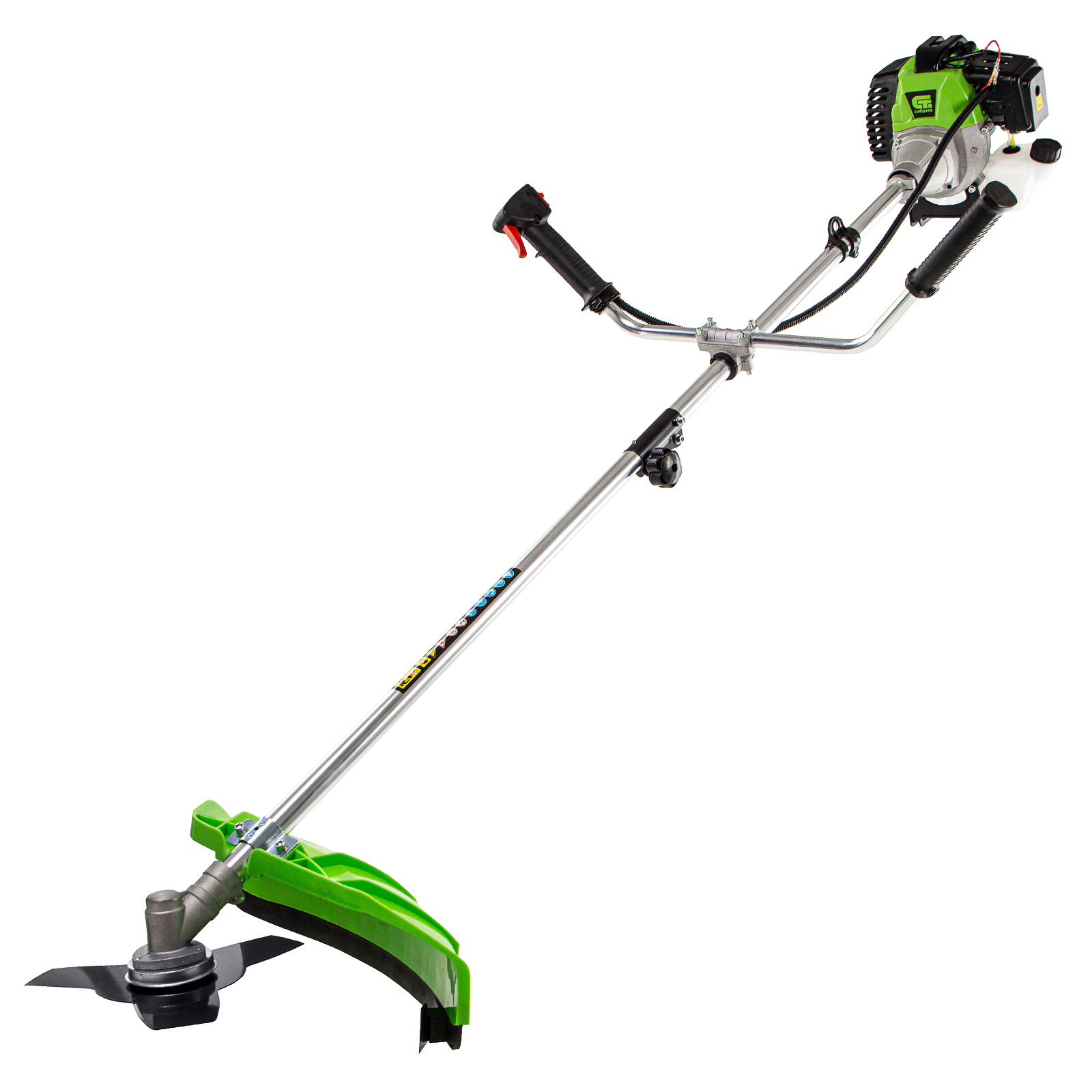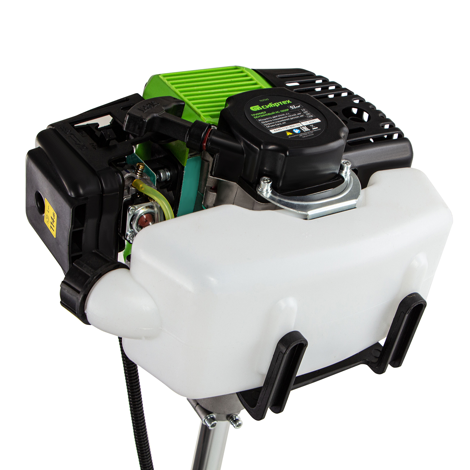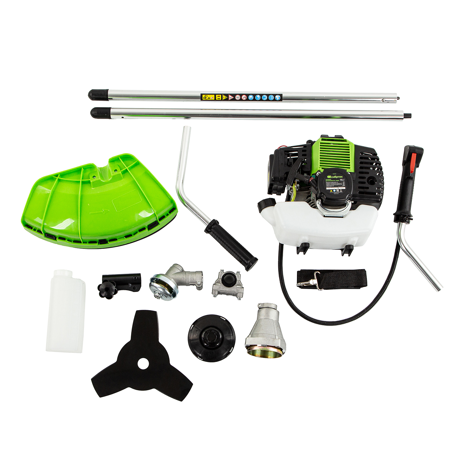 Бензиновый триммер Сибртех КС-3000Р 962565 с разъемной штангой, поставляющийся комплектом из 2 частей, имеет двигатель объемом 52 куб. см и мощностью 3 л. с., благодаря чему успешно справляется с подравниванием газона, скашиванием травы на лужайке и уничтожением сорняков. Выполнение этих задач облегчают режущие элементы — катушка с леской и трехлопастный нож. Леской триммер скашивает 42 см за один проход, а ножом — 25,5 см, поэтому можно за короткое время привести дачный участок в порядок. Благодаря разборной штанге мотокоса не занимает много места во время хранения и транспортировки.