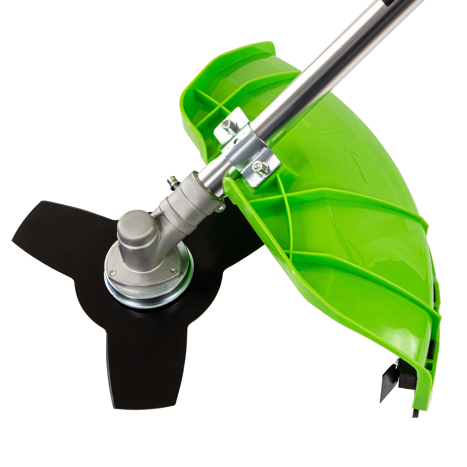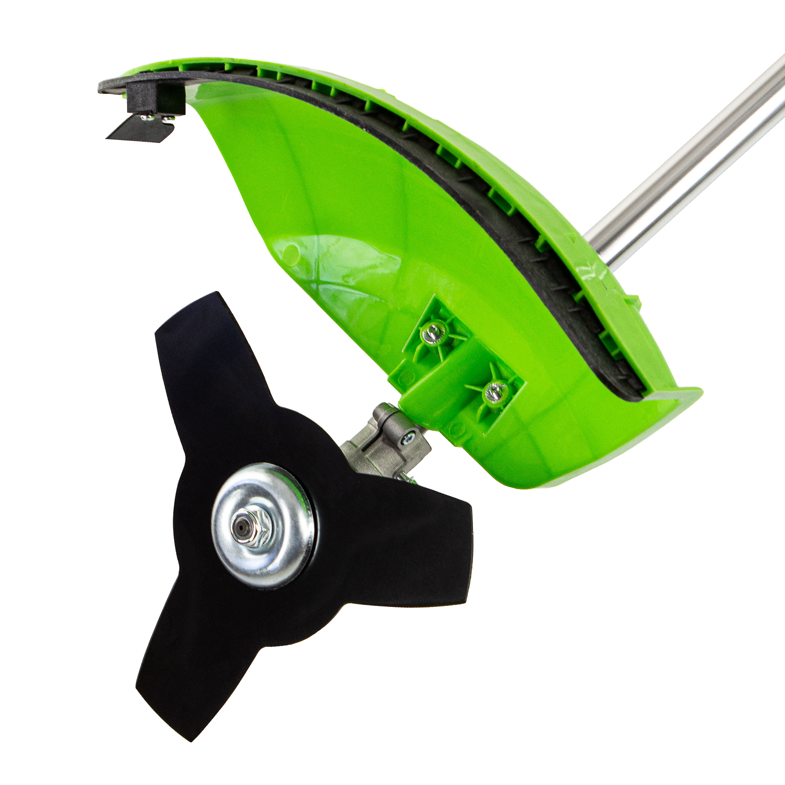 Защита от летящей травы и камней — режущий элемент со стороны пользователя закрыт прочным пластиковым кожухом.