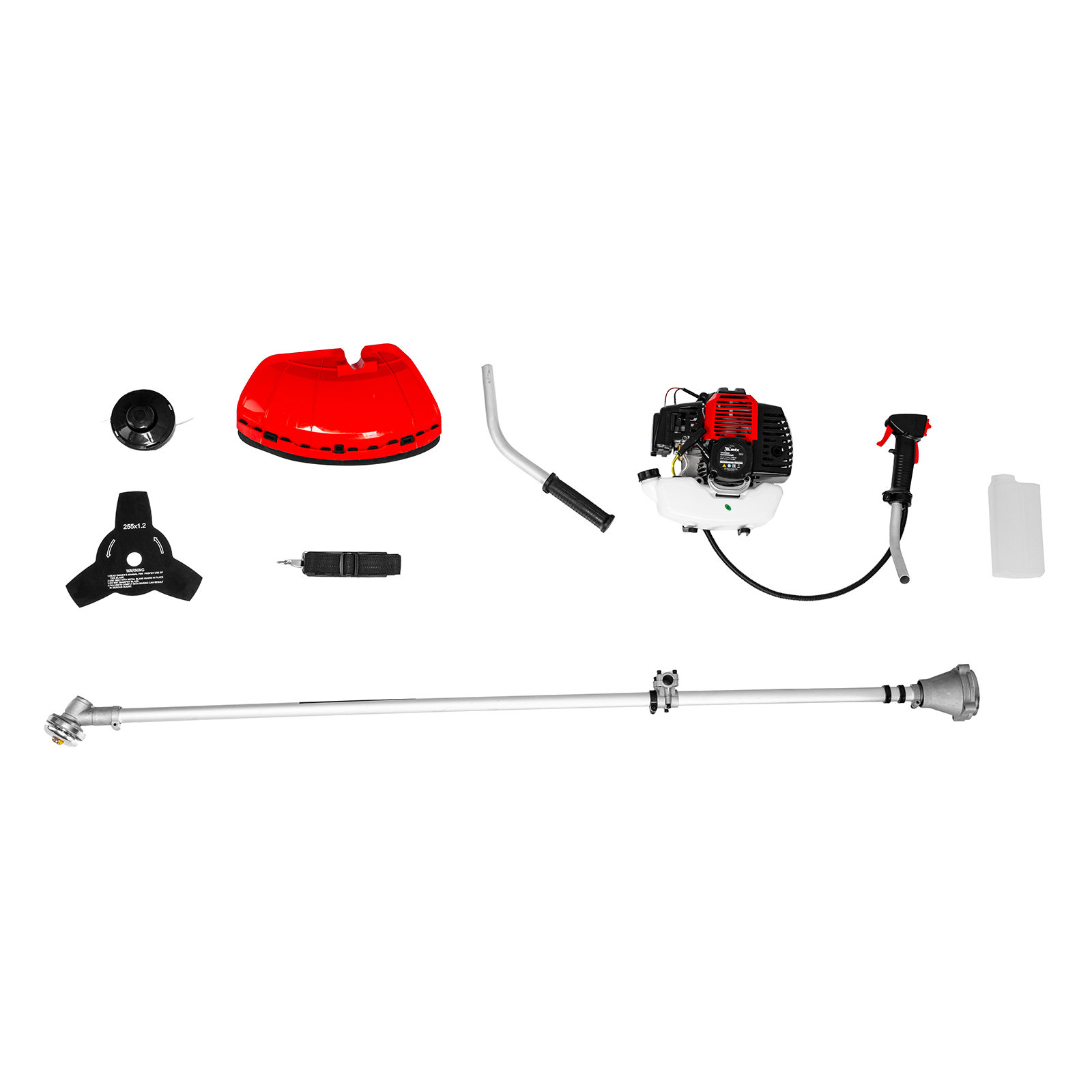 Двигатель с правой рукояткой - 1 шт, левая рукоятка - 1 штШтанга - 1 штЗащитный кожух с ножом - 1 шт, кронштейн защитного кожуха - 1 штКатушка с леской - 1 шт, нож трехлопастной - 1 штДозатор для приготовления смеси - 1 штРемень плечевой - 1 штКорпус сцепления с крепежом - 1 шт, редуктор с винтами - 1 штУзел крепления рукояток с крепежом - 1 шт, узел подвеса ремня - 1 штСвечной ключ - 1 шт, имбусовый ключ Н5 - 1 шт, имбусовый ключ Н6 - 1 штБолт M6×20 - 4 шт, болт M5×15 - 2 шт, гайка M5 - 2 штХомут - 2 штРуководство по эксплуатации с гарантийным талоном - 1 шт