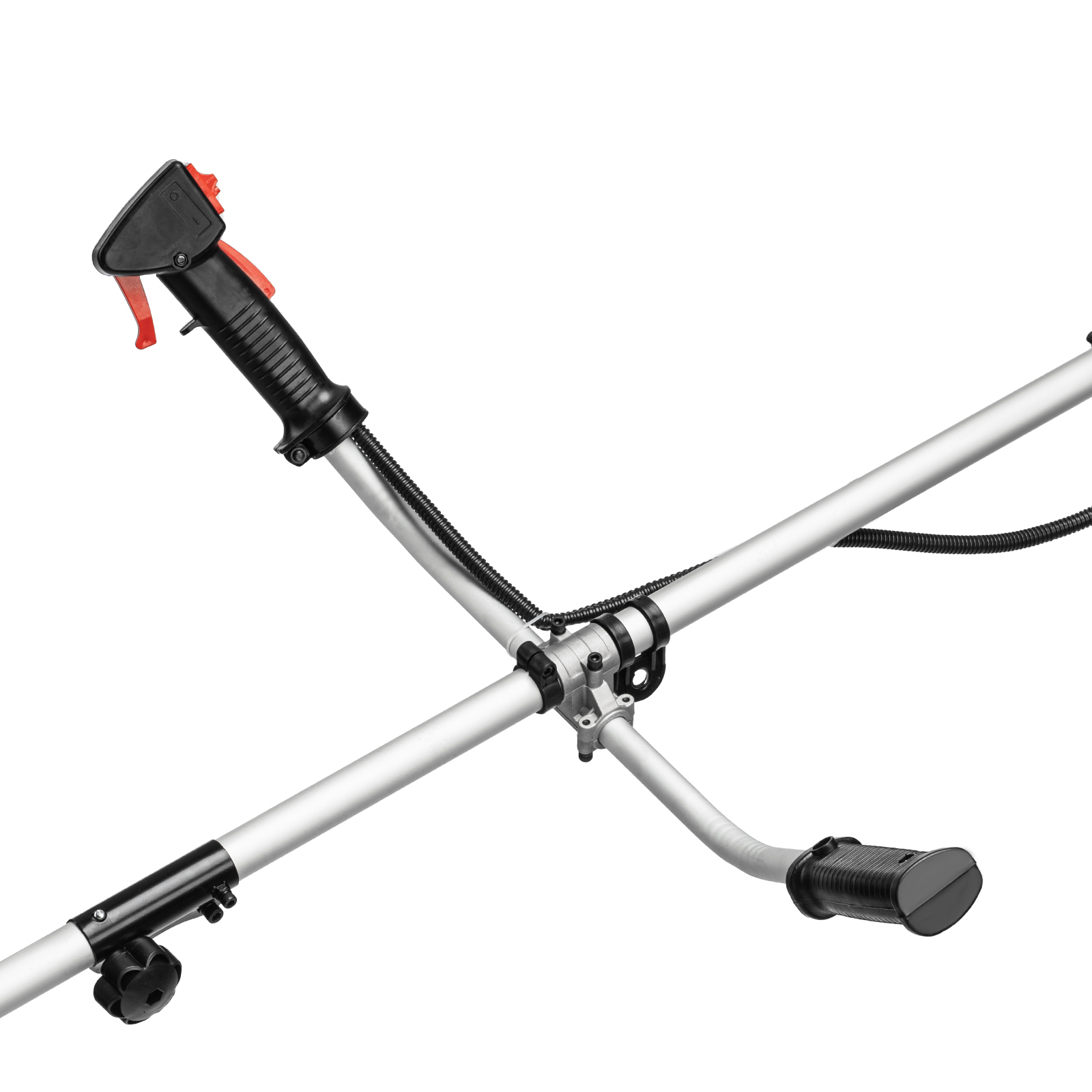 - Комфортная работа — благодаря рукояткам велосипедного типа, плечевому ремню и оптимизированной антивибрационной системе триммер удобно удерживать и направлять.