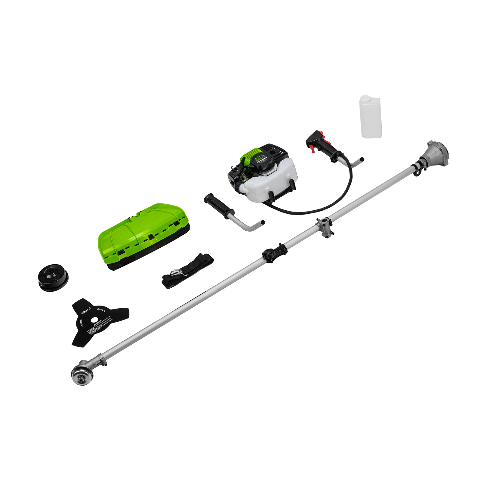 - Удобное хранение и транспортировка — штанга выполнена разборной, поэтому триммер не занимает много места.