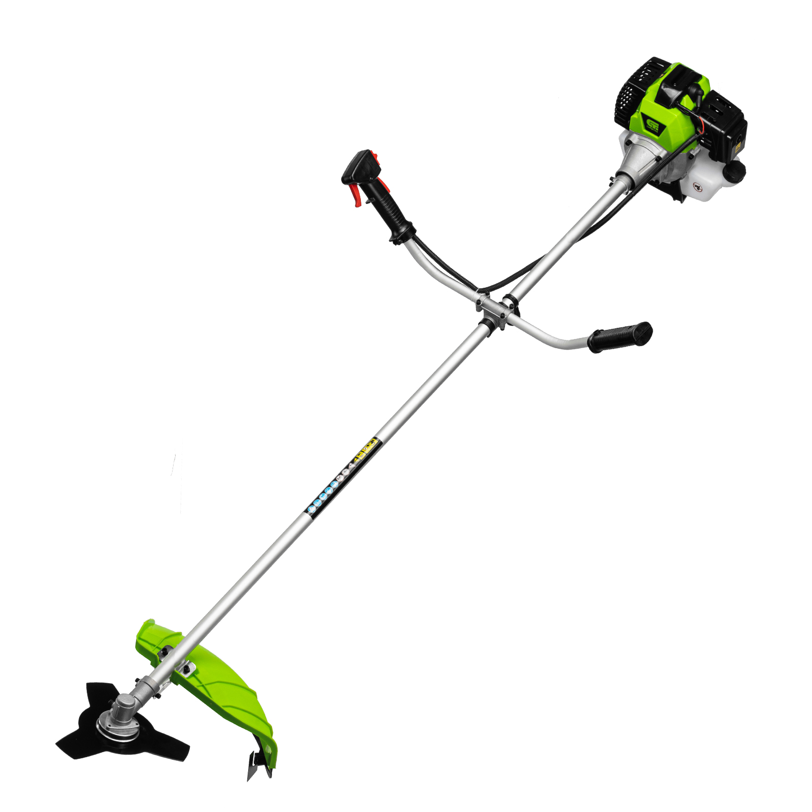 Триммер бензиновый Сибртех ТС-2500Н 962235 с двигателем объемом 43 см3 и неразъемной штангой поставляется комплектом, состоящим из 2 частей. Используется для стрижки газонной травы и скашивания растительности. Входящий в комплект поставки трехлопастный нож позволяет легко справляться с густой, жесткой травой и толстыми стеблями сорняков. Оснастка вращается с частотой 9500 об/мин, ширина скашивания леской составляет 420 мм, ножом — 255 мм.