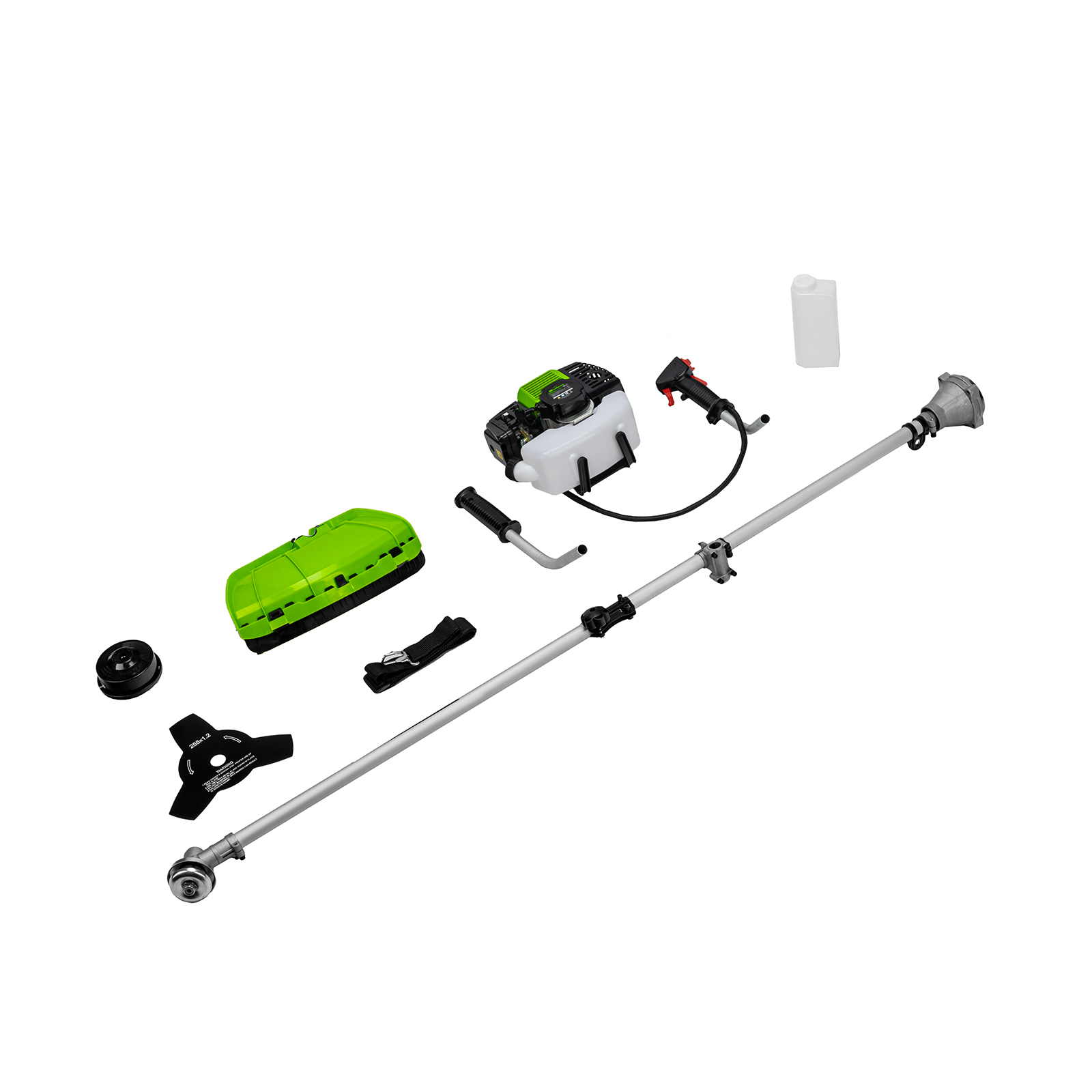 - Удобное хранение и транспортировка — штанга выполнена разборной, поэтому триммер не занимает много места.