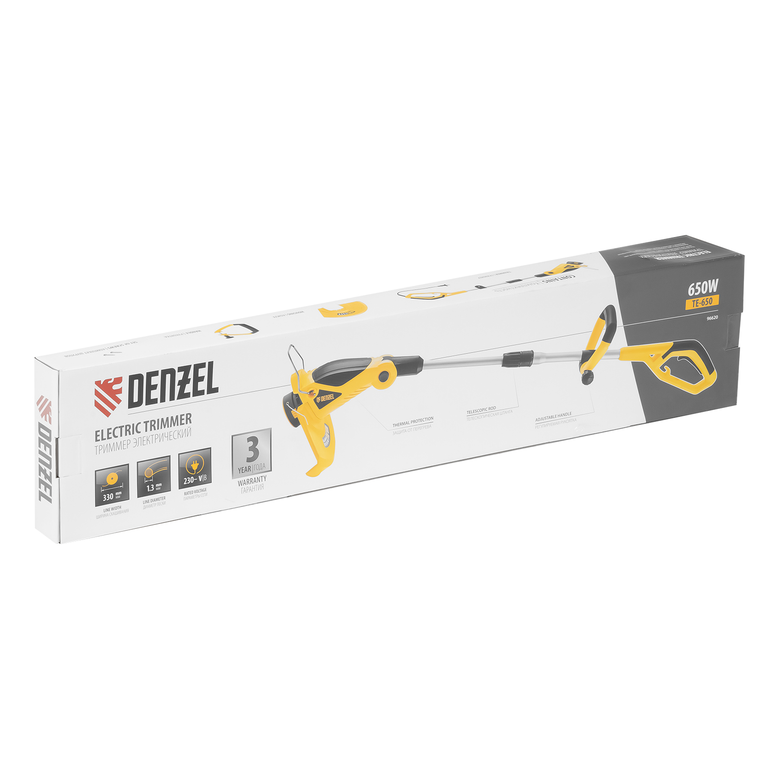Электрический триммер Denzel TE-650 96620 мощностью 650 Вт обеспечивает вращение оснастки со скоростью 9000 об/мин и ширину скашивания 330 мм. Идеально подходит для скашивания газонной травы на небольших участках и в местах, недоступных для колесных газонокосилок. Благодаря нижнему расположению двигателя триммер хорошо сбалансирован, им просто и комфортно работать. Он будет полезен владельцам дачных участков. ,Электротриммер не требует специальной подготовки и сложного технического обслуживания: не нужно смешивать с маслом бензин, сливать топливо, прогревать двигатель.