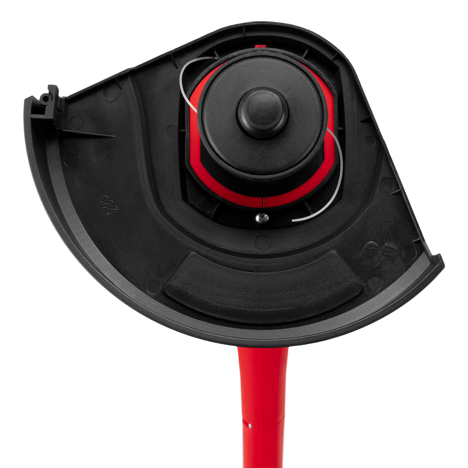 - Автоматическая подрезка лески — на защитном кожухе предусмотрен нож, укорачивающий корд до нужной длины.