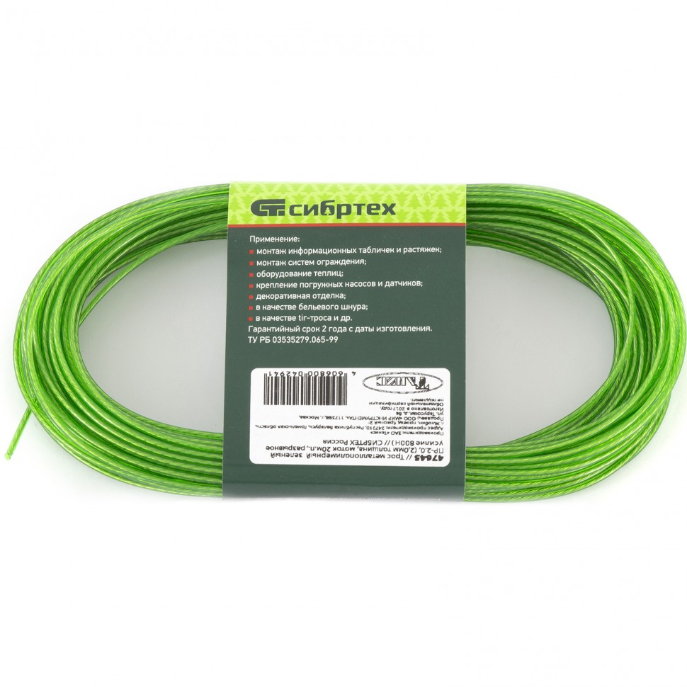 <p>Металлополимерный трос ПР-2.5 Сибртех 47643 красного цвета, толщиной 2,5 мм, в мотке 20 метров, используется для монтажа баннеров и рекламных растяжек, погружения скважинных насосов и датчиков, установки тентов и теплиц, а также в качестве пломбировочного троса. Может выполнять функцию садового шнура для подвязки растений, устройства ограждений, а также применяться в качестве троса для развешивания белья. Благодаря покрытию из пластиката ПВХ-трос устойчив к истиранию, коррозии, УФ-излучению и перепадам температуры, что увеличивает срок его службы.</p><h2>Преимущества</h2><ul><li>Устойчивость к разрывным нагрузкам — жила троса изготовлена из стальной латунированной проволоки.</li><li>Повышенная износостойкость — ПВХ-покрытие нанесено методом экструзии.</li><li>Возможность использования в декоративных целях — оболочка троса выкрашена в красный цвет.</li></ul>