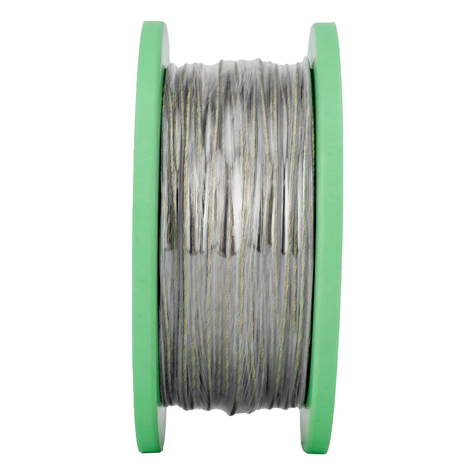 Металлополимерный прозрачный трос ПР-2.5 Сибртех 47626 толщиной 2,5 мм, 200 м. п. на катушке, используется для монтажа рекламных баннеров, установки ограждений, палаток, теплиц, погружения скважинных насосов и датчиков. Применяется в качестве садового троса-шнура для подвязки растений, а также может служить для развешивания белья. Жила шнура изготовлена из стальной проволоки, поэтому он выдерживает значительные нагрузки.