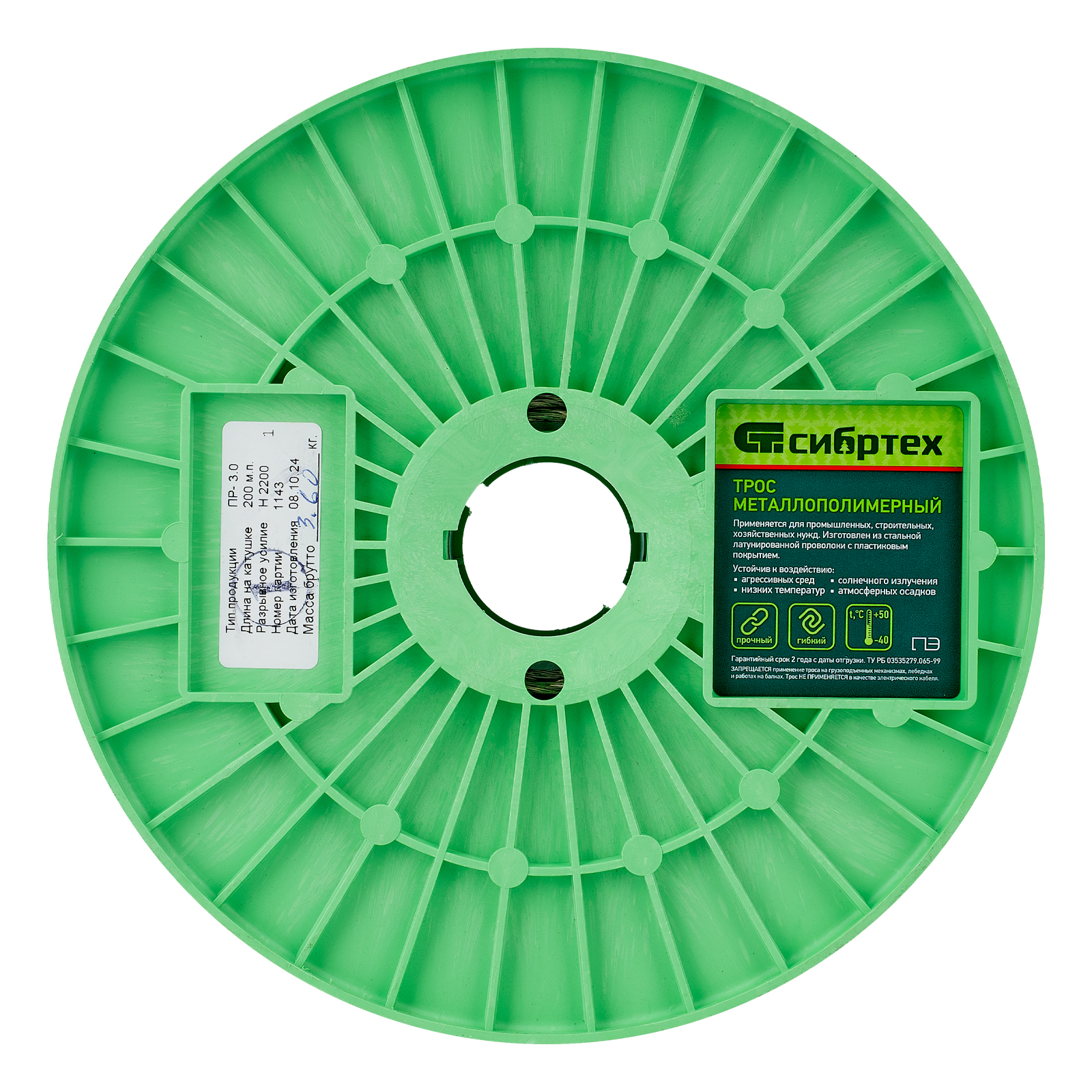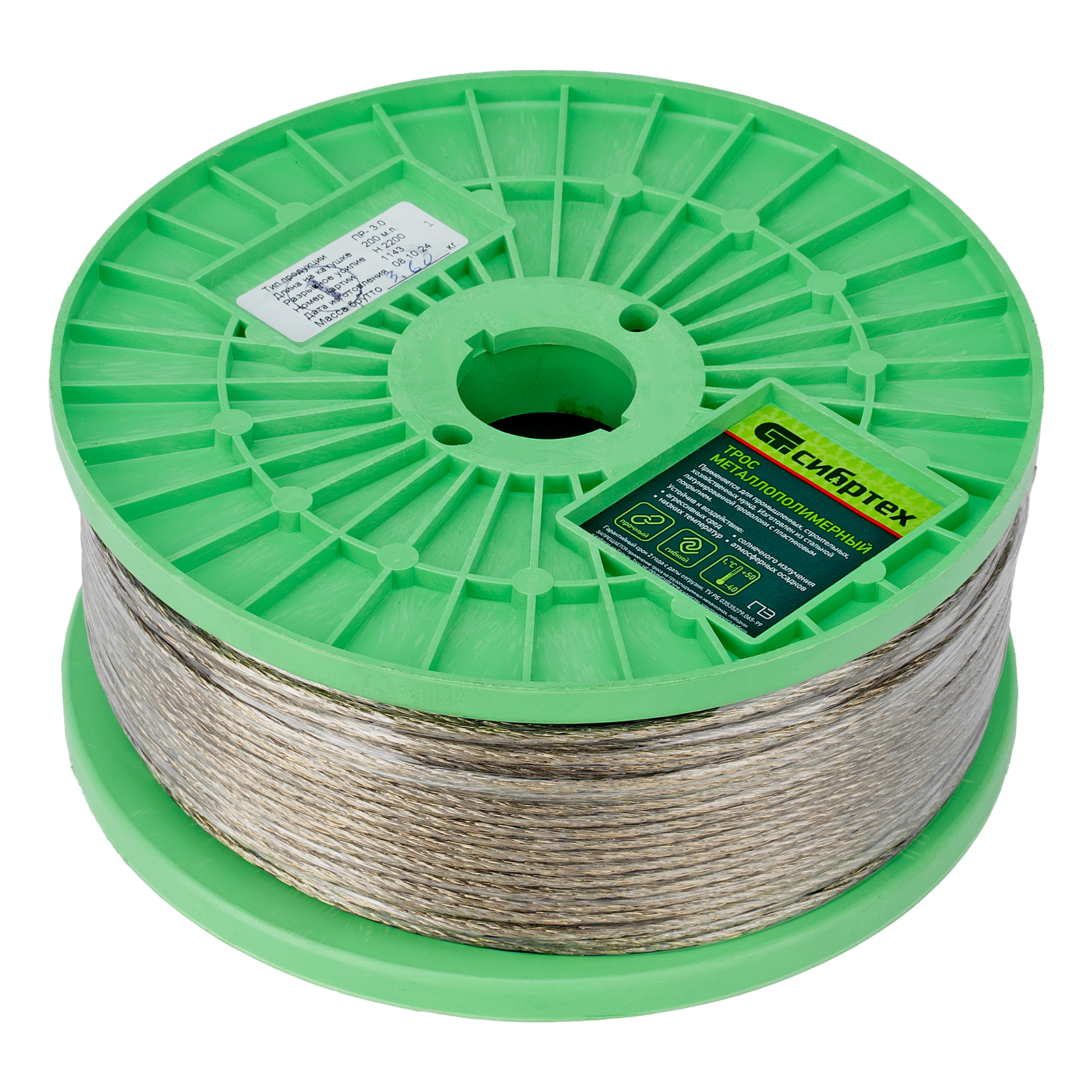 <p>Металлополимерный прозрачный трос ПР-3.0 Сибртех 47628 толщиной 3 мм, 200 м. п. на катушке, используется для монтажа рекламных баннеров, установки ограждений, палаток, теплиц, погружения скважинных насосов и датчиков. Применяется в качестве садового троса-шнура для подвязки растений, а также может служить для развешивания белья. Жила шнура изготовлена из стальной проволоки, поэтому он выдерживает значительные нагрузки.</p><h2>Преимущества</h2><ul><li>Долговечность — латунированный сердечник устойчив к коррозии, покрытие из пластифицированного ПВХ защищает изделие от истирания.</li><li>Ровное сплошное покрытие — ПВХ-оплетка нанесена методом экструзии.</li><li>200 м в намотке — троса хватит для выполнения большого объема работ.</li></ul>