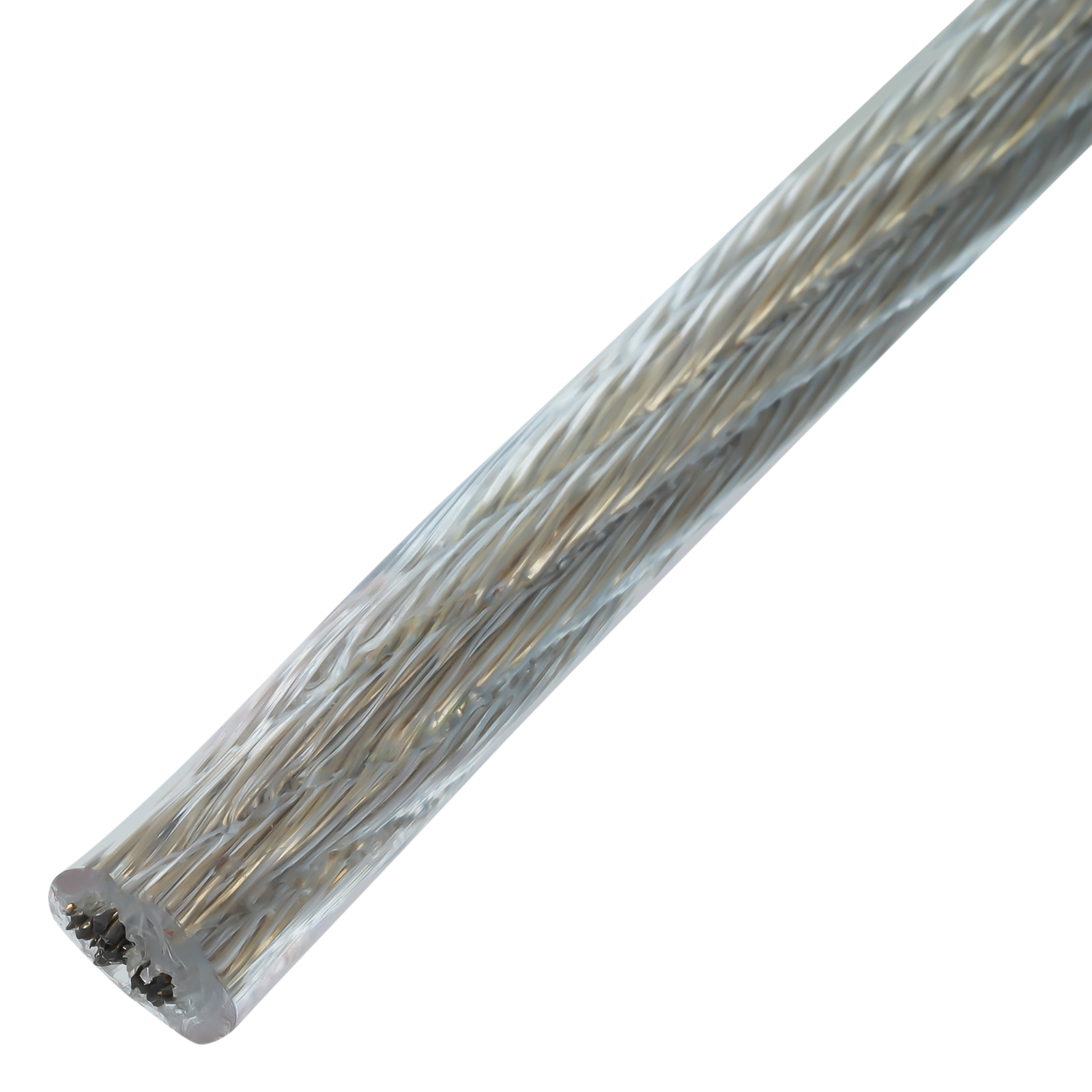 Целостность покрытия — ПВХ-оболочка нанесена на прозрачный трос методом экструзии.