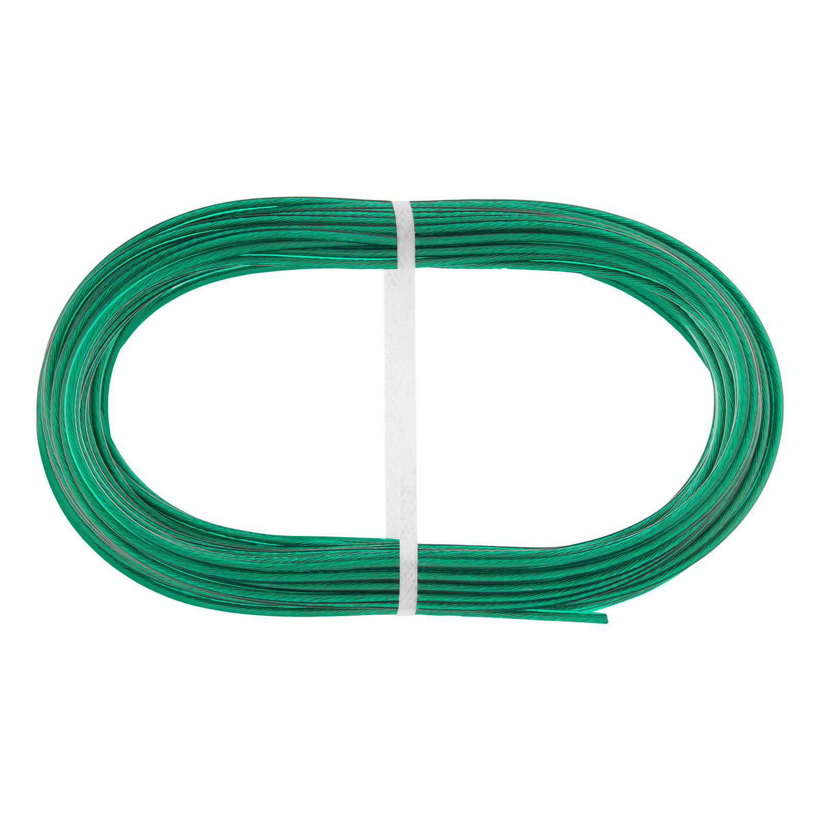 Металлополимерный трос ПР-3.0 Сибртех 47647 зеленого цвета, толщиной 3 мм, в мотке 20 метров, используется для монтажа баннеров и рекламных растяжек, погружения скважинных насосов и датчиков, установки тентов и теплиц, а также в качестве пломбировочного троса. Может выполнять функцию садового шнура для подвязки растений, устройства ограждений, а также применяться в качестве троса для развешивания белья. Благодаря покрытию из пластиката ПВХ-трос устойчив к истиранию, коррозии, УФ-излучению и перепадам температуры, что увеличивает срок его службы.
