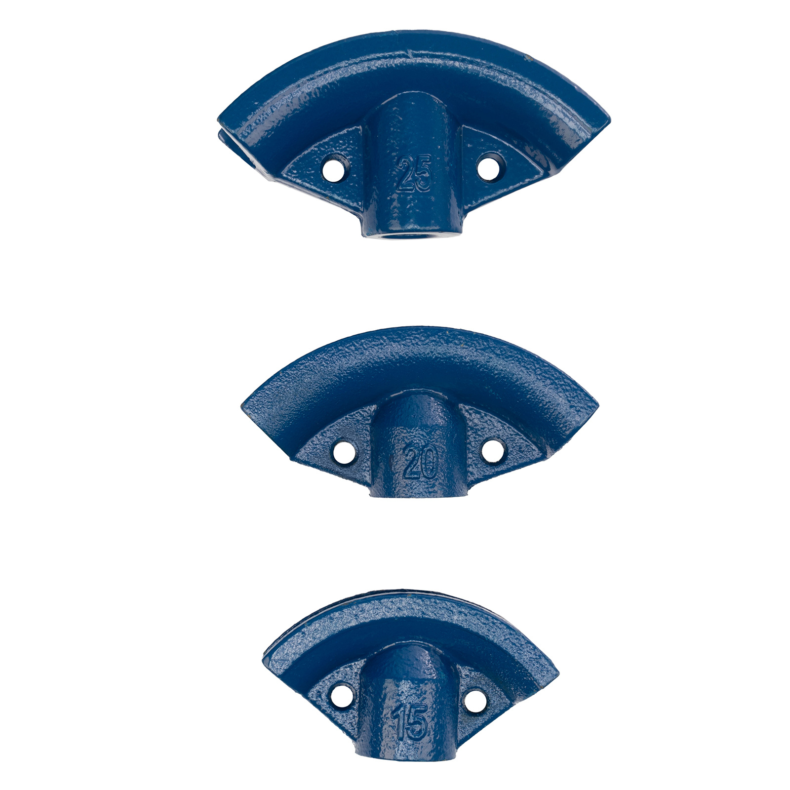 - Функциональность — в комплект поставки входит 3 насадки для сгибания труб диаметром 1/2", 3/4" и 1".