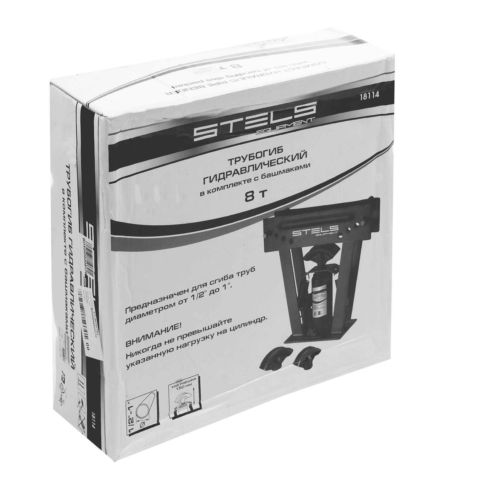 Гидравлический трубогиб Stels 18114 в комплекте с башмаками 1/2"–1" применяется для быстрой гибки труб. Гидравлический привод экономит усилия мастера. Инструмент способен сгибать трубы с толщиной стенок до 4 мм до 90° в холодном состоянии. Оборудование позволяет прикладывать усилие до 8 т. При изгибании пропускная способность труб не уменьшается, поэтому они подходят для систем высокого давления. Трубогиб используется в строительстве и машиностроении.