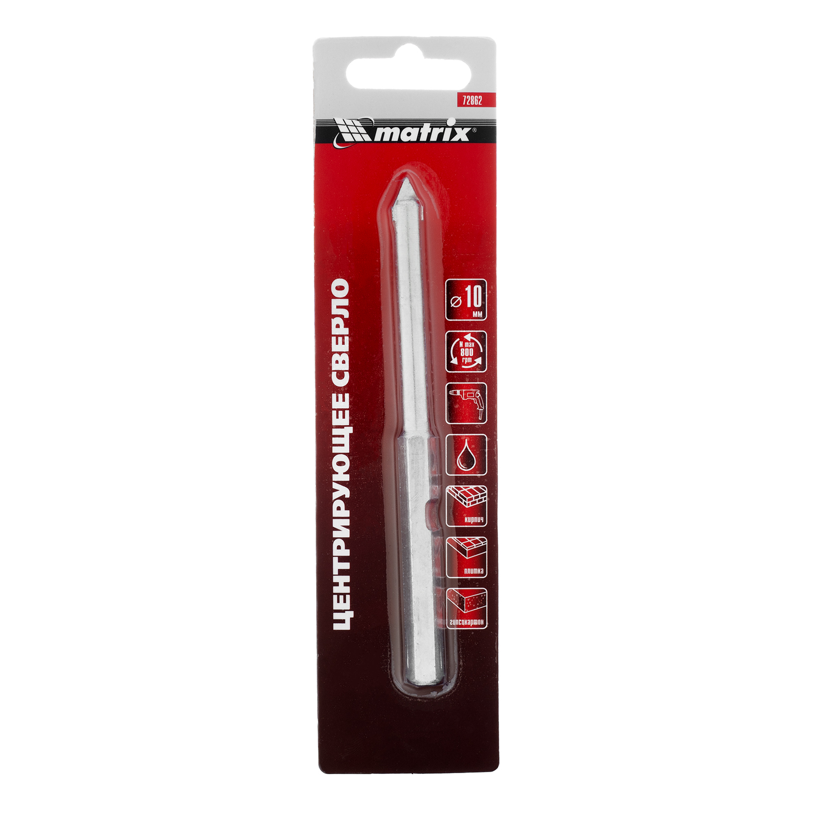 Центрирующее сверло для коронок Matrix 72862 диаметром 10 мм, с карбидным напылением и 6-гранным хвостовиком, устанавливается в державку Matrix 72860. Облегчает засверливание и повышает точность работы, предотвращая смещение державки и коронки. Также с его помощью державка с коронкой фиксируется в патроне дрели и шуруповерта. Сверло рассчитано на работу с водяным охлаждением, что значительно повышает срок его службы.