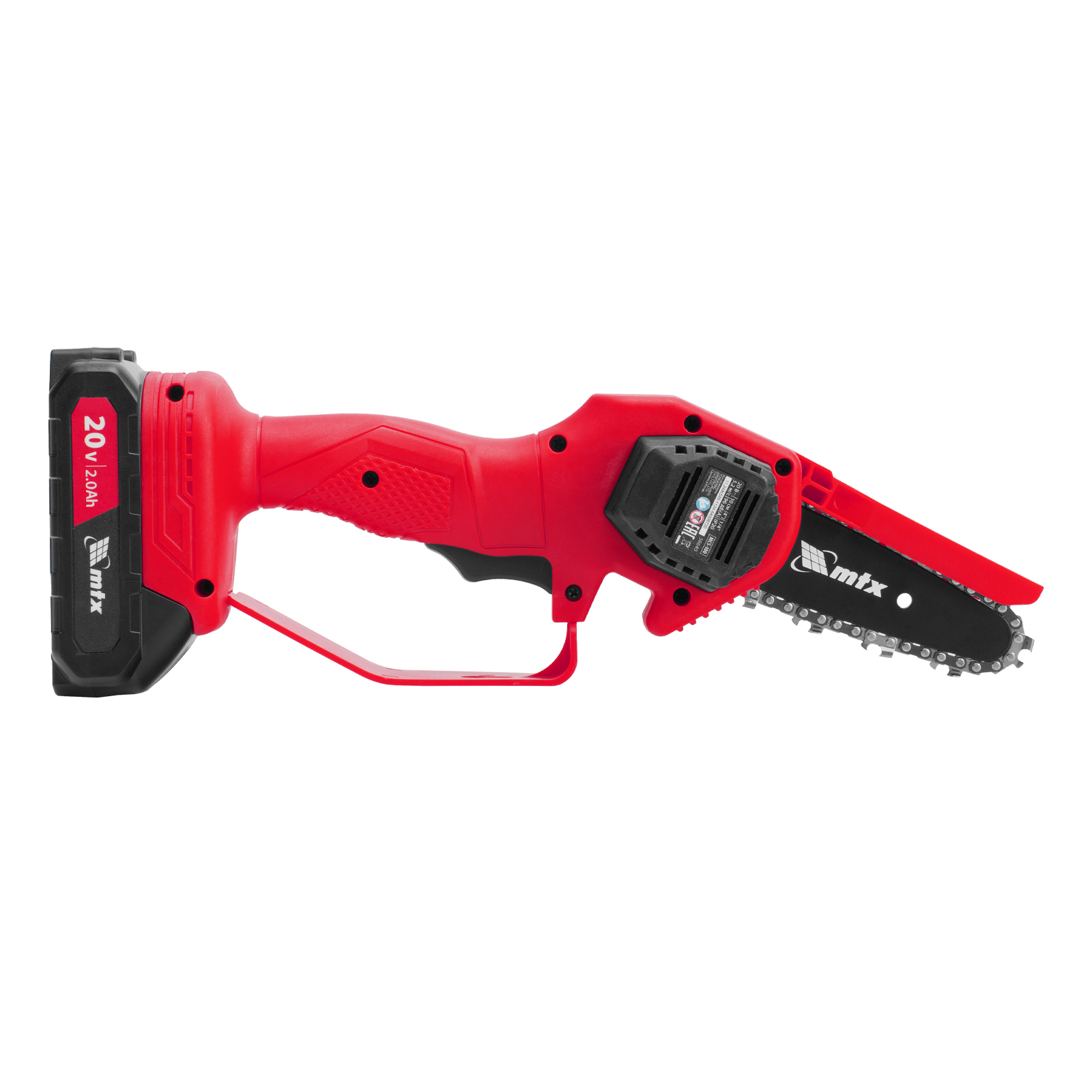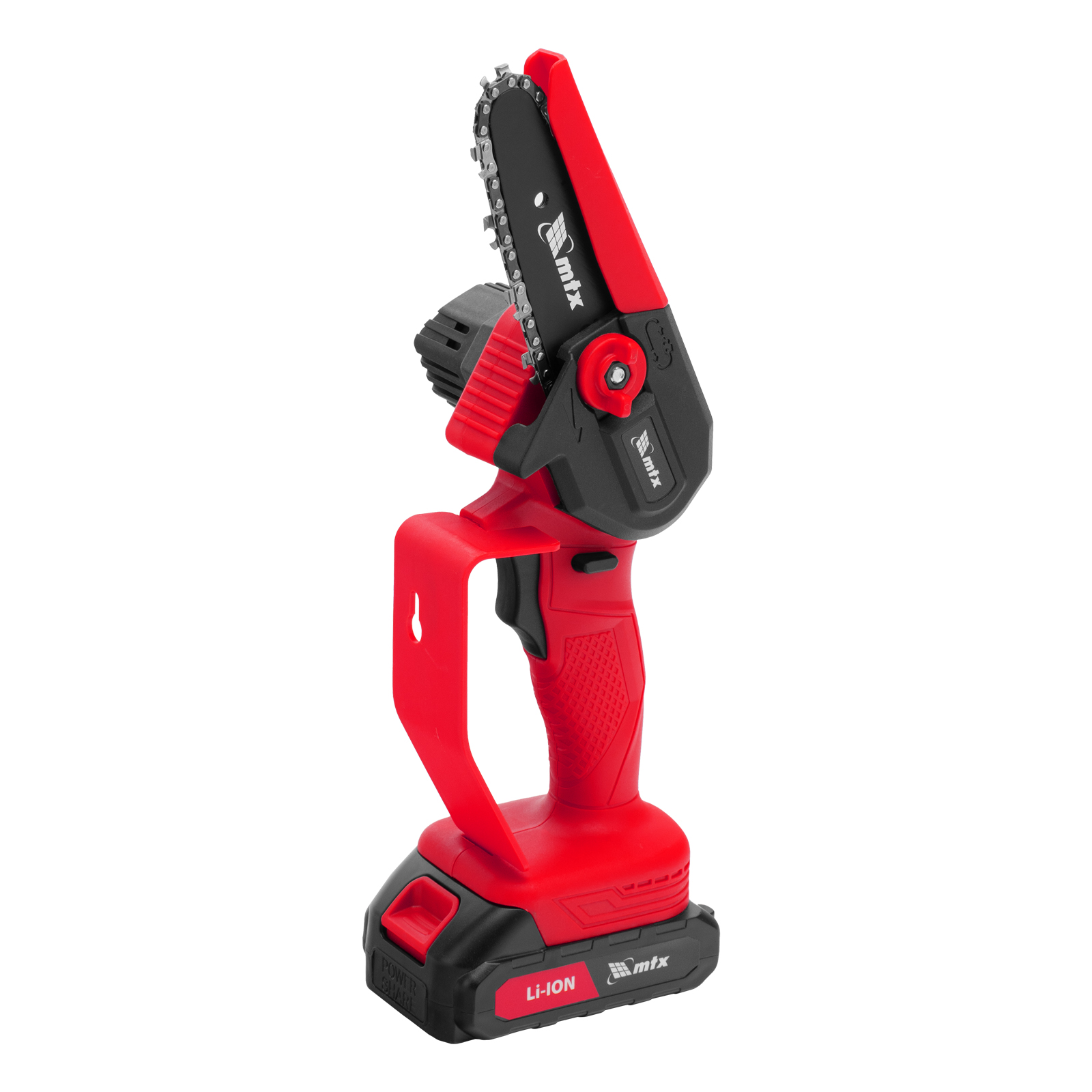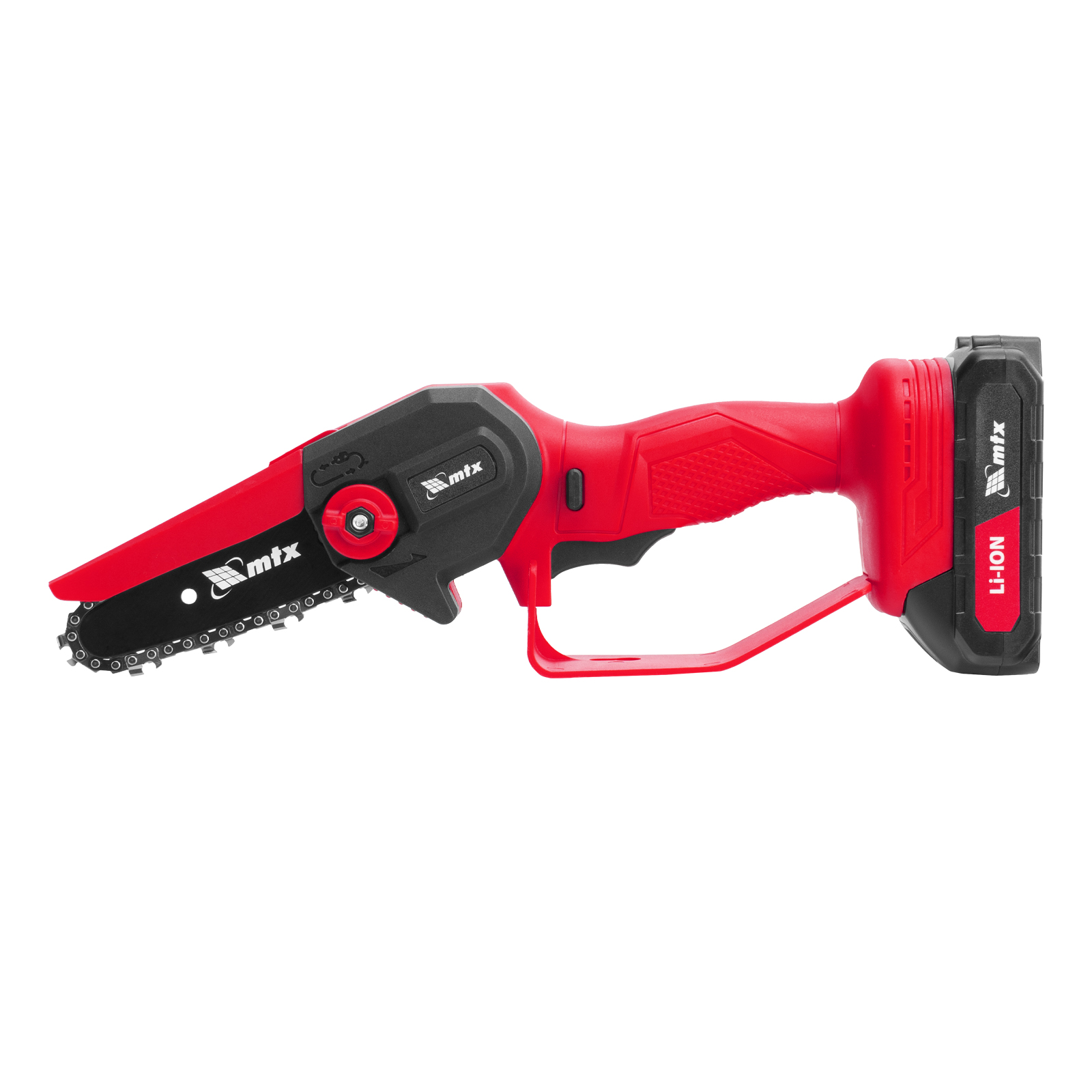 Аккумуляторная цепная мини-пила MTX MCS-100 58640 с шиной длиной 100 мм предназначена для отпиливания веток и сучков, а также пиления бруса толщиной до 100 мм. Работает от аккумулятора Li-Ion 20 В емкостью 2 А·ч, пригодится для работы на садовом участке и в мастерской, также пилу удобно брать на выездные работы.