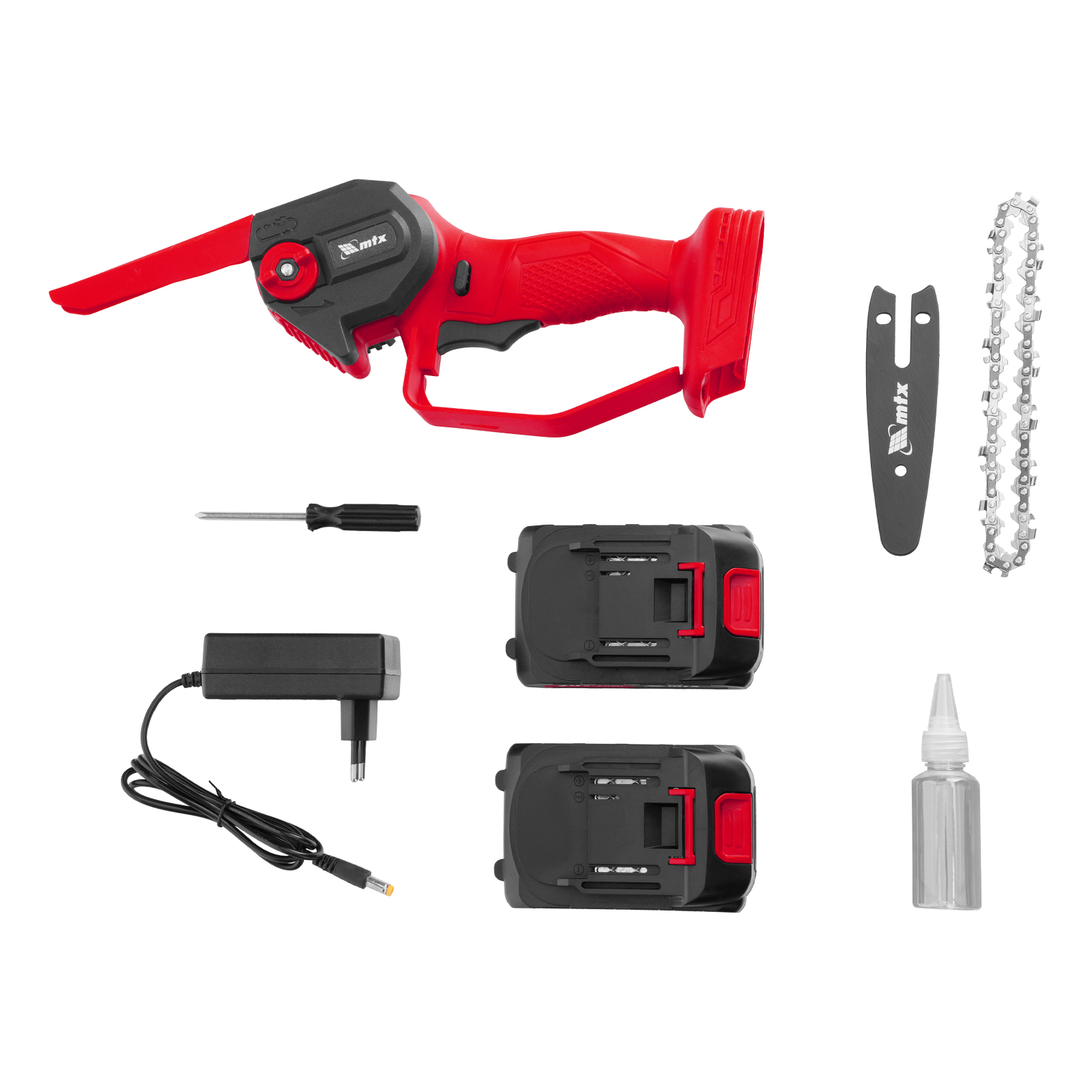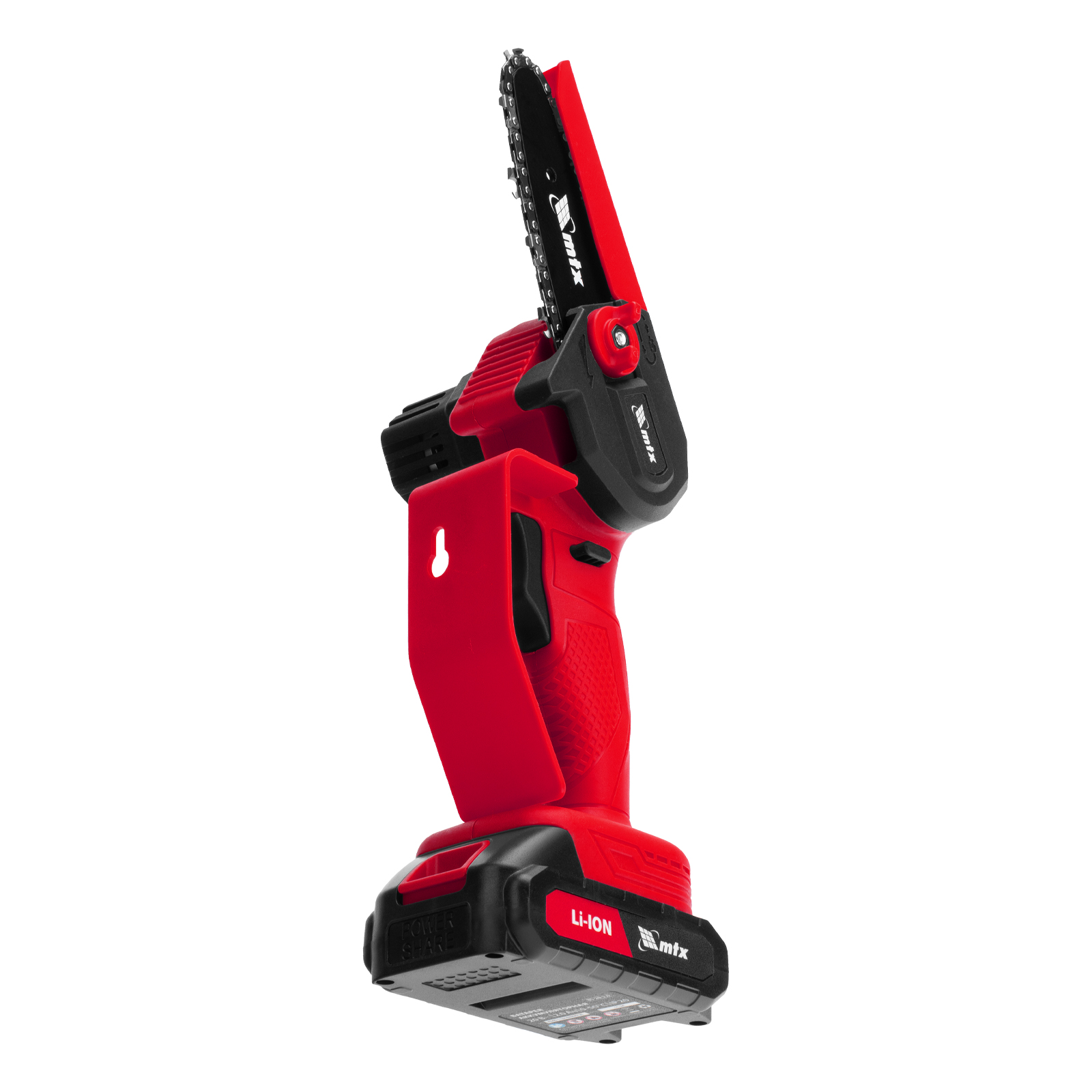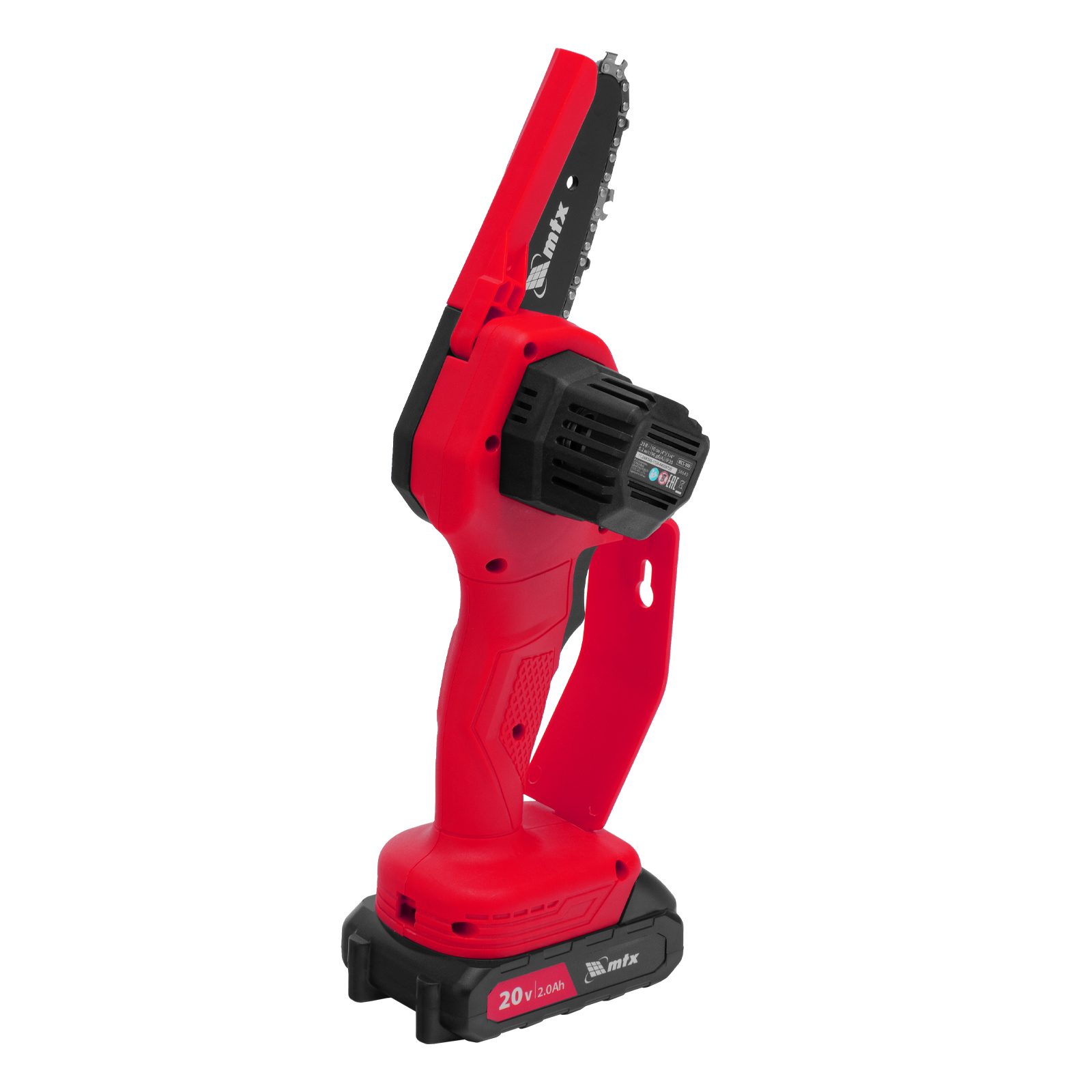 Аккумуляторная цепная мини-пила MTX MCS-100 58640 с шиной длиной 100 мм предназначена для отпиливания веток и сучков, а также пиления бруса толщиной до 100 мм. Работает от аккумулятора Li-Ion 20 В емкостью 2 А·ч, пригодится для работы на садовом участке и в мастерской, также пилу удобно брать на выездные работы.
