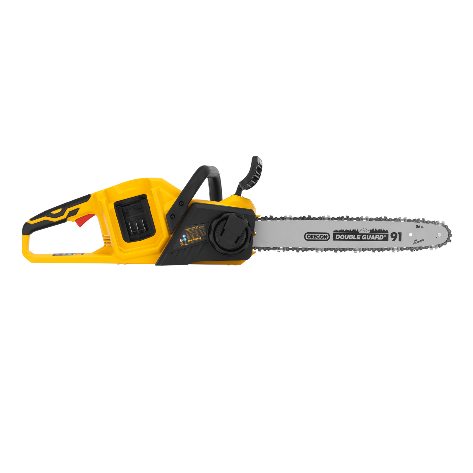 Пила работает на единой платформе Denzel battery system и совместима с аккумуляторами 18 В. Модель поставляется с прочной и легкой шиной OREGON длиной 40 см и цепью с шагом 3/8".