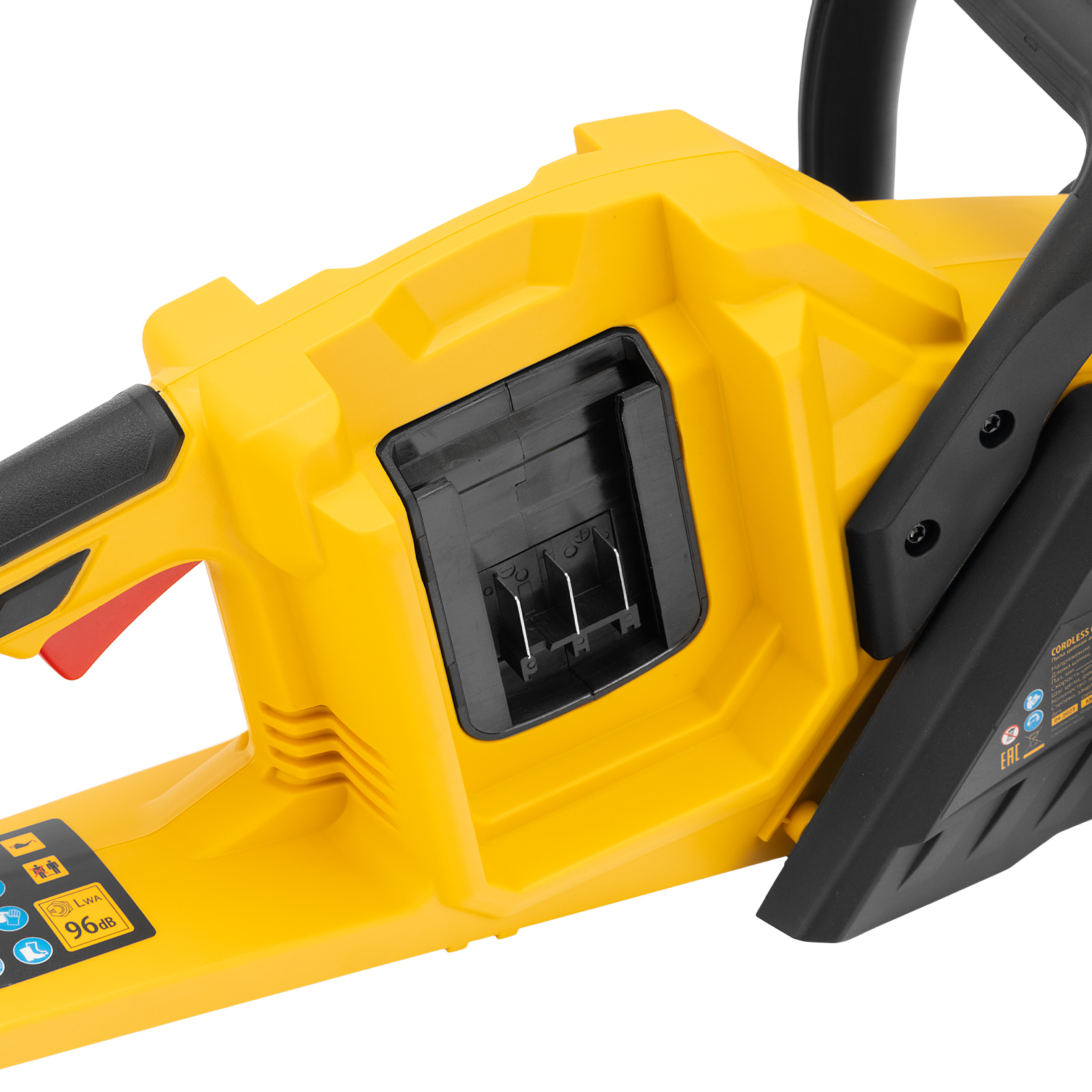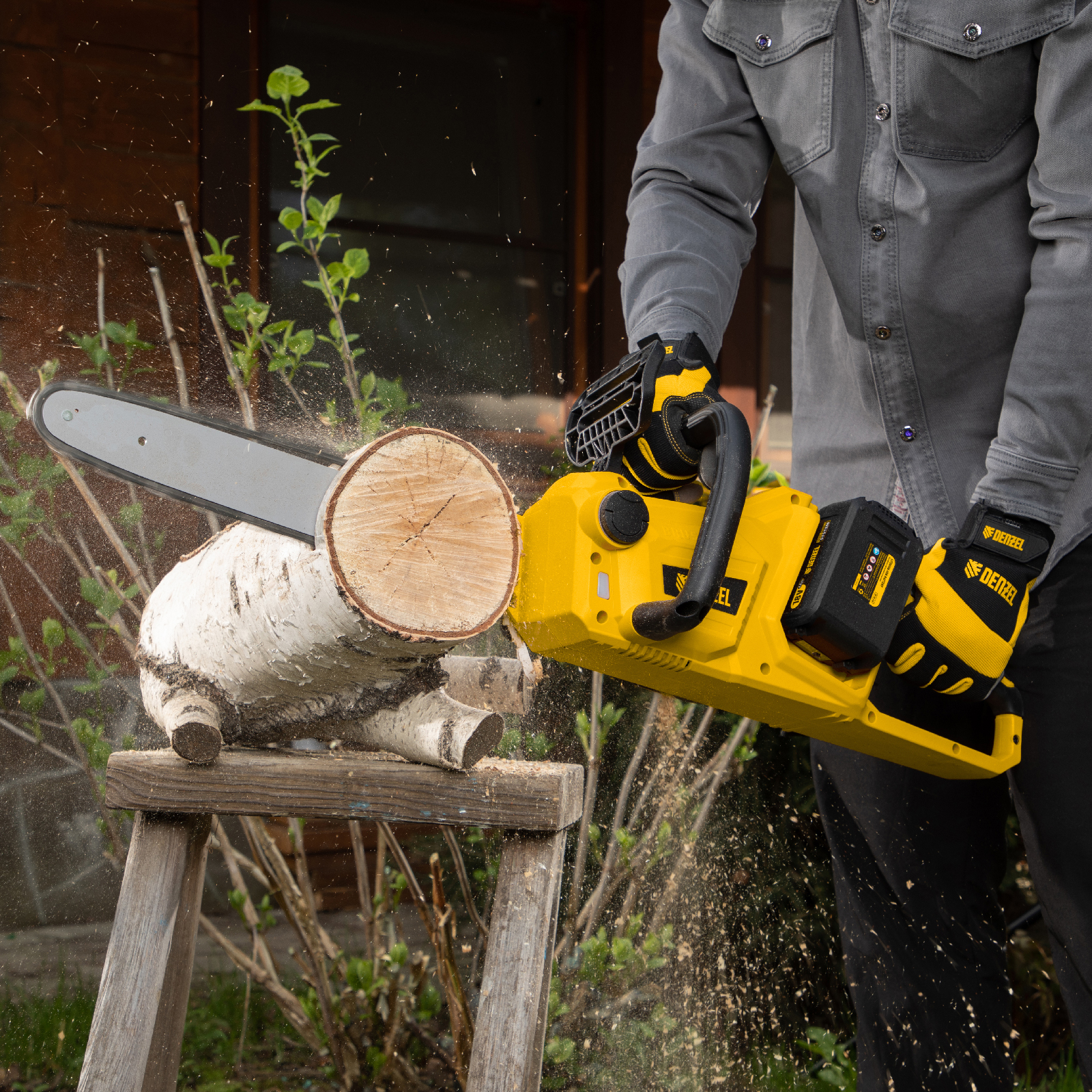 - Комфортная работа — в сравнении с бензиновыми пилами, аккумуляторная модель не создает сильных вибраций и имеет достаточно низкий уровень шума.