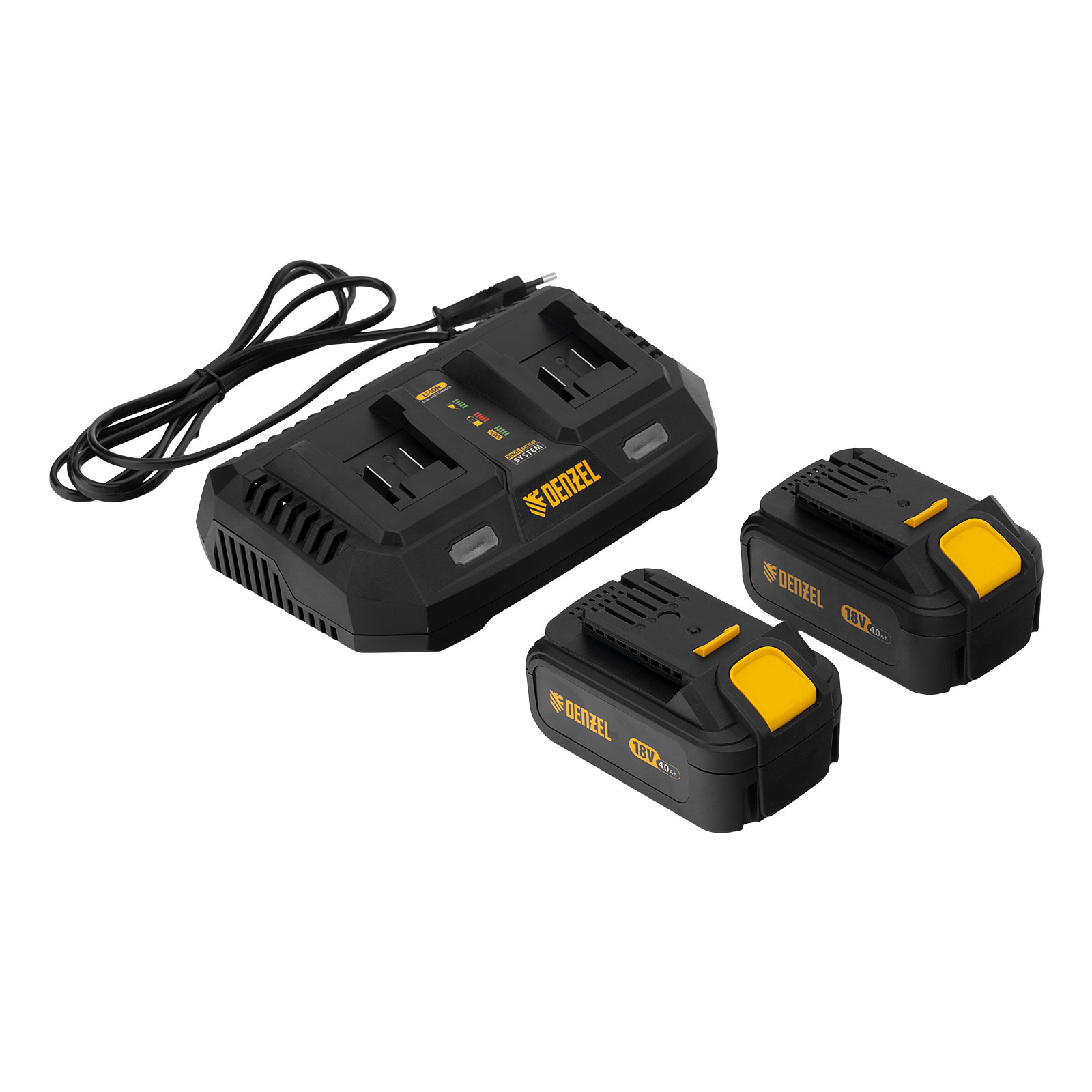 - Универсальность — аккумуляторы 4Ач Li-ion совместимы с любым инструментом 18V Denzel battery system серии IB.