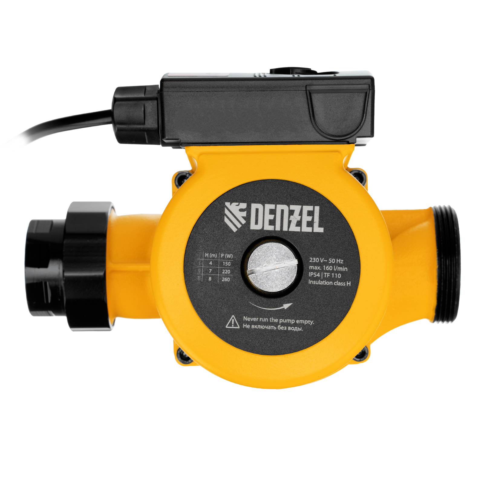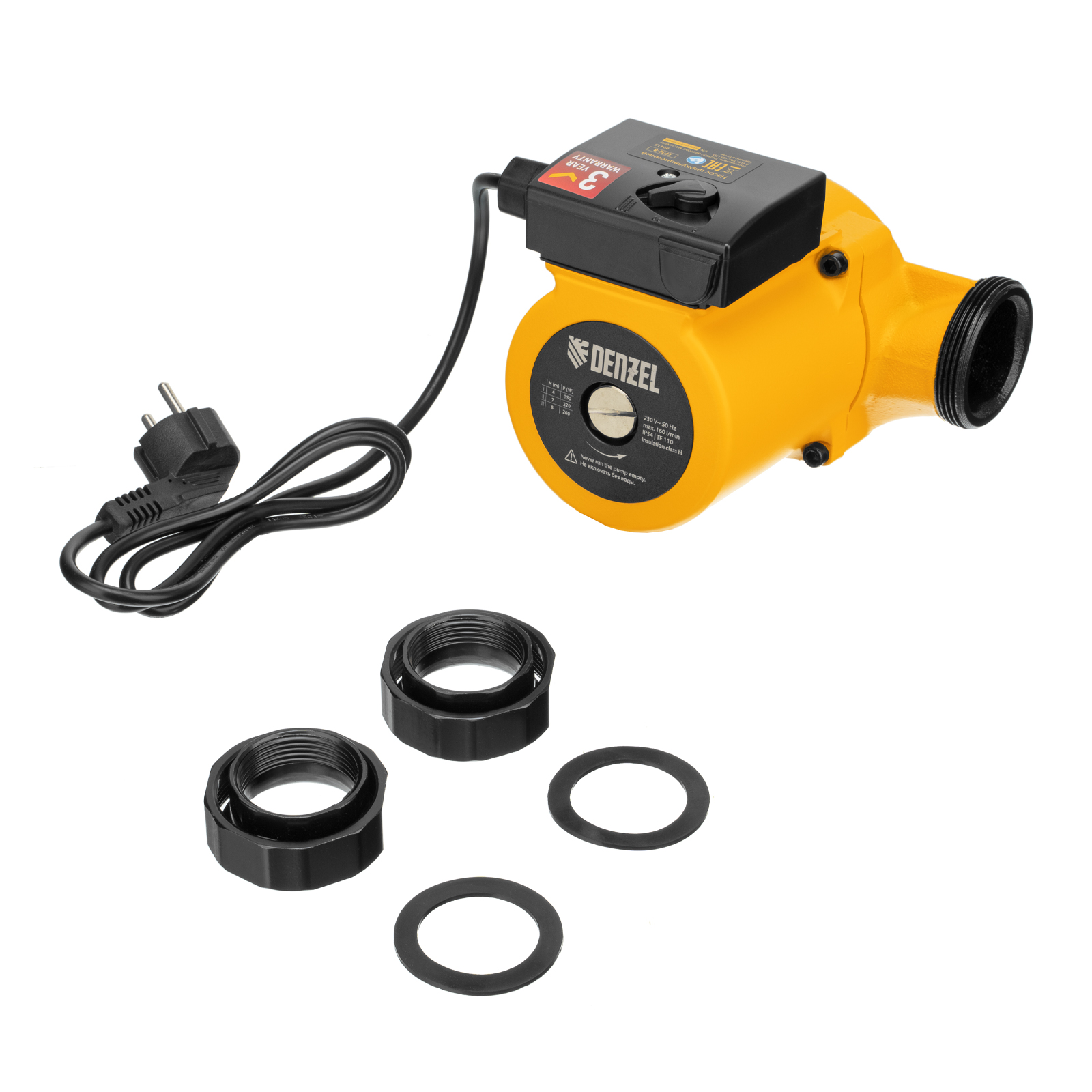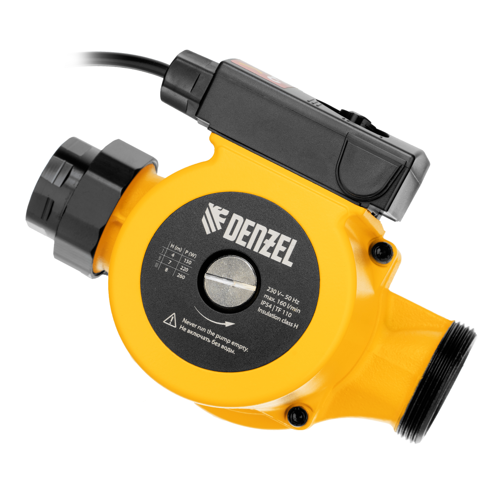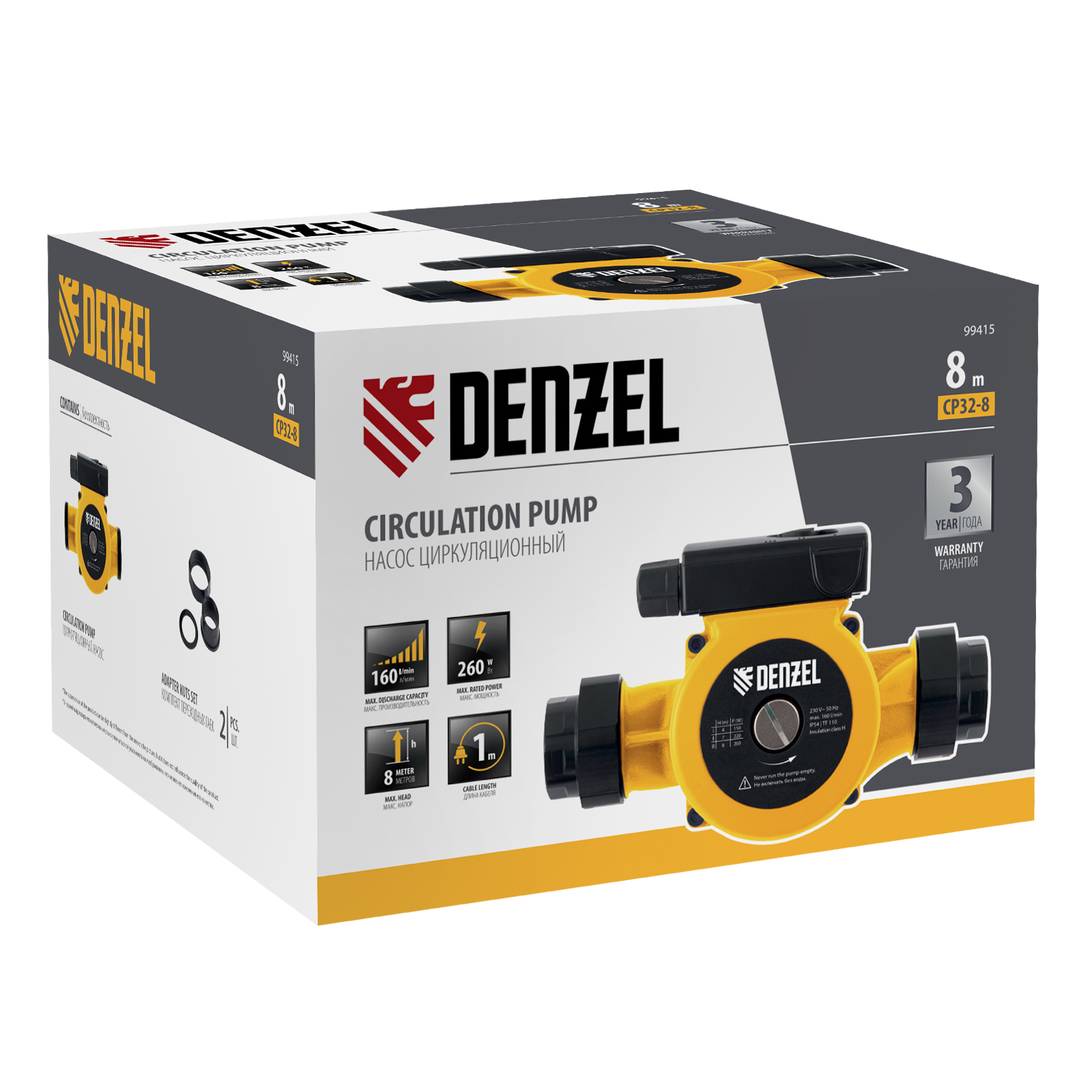 Циркуляционный насос Denzel CP32-8 99415 с кабелем длиной 1 м имеет монтажную длину 180 мм и обеспечивает напор до 8 м, максимальный объем перекачиваемой жидкости составляет 160 л/мин. Устройство обеспечивает непрерывное движение горячей воды температурой до 110 °C по трубопроводу. Насос позволит организовать эффективную систему теплоснабжения загородного дома.