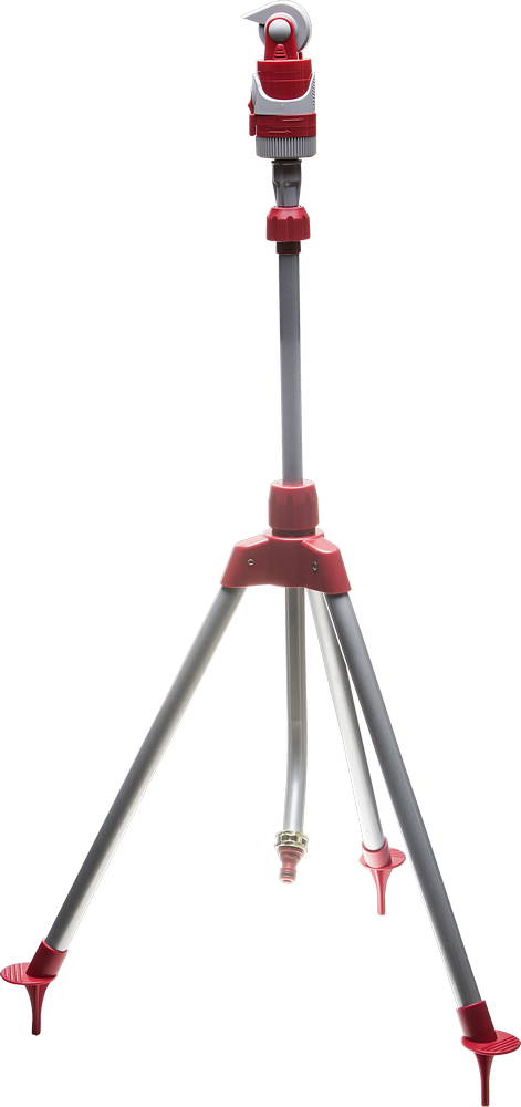 - Распылитель изготовлен из ударопрочного пластика, а устойчивая стальная тренога надёжно фиксирует распылитель на поверхности почвы.