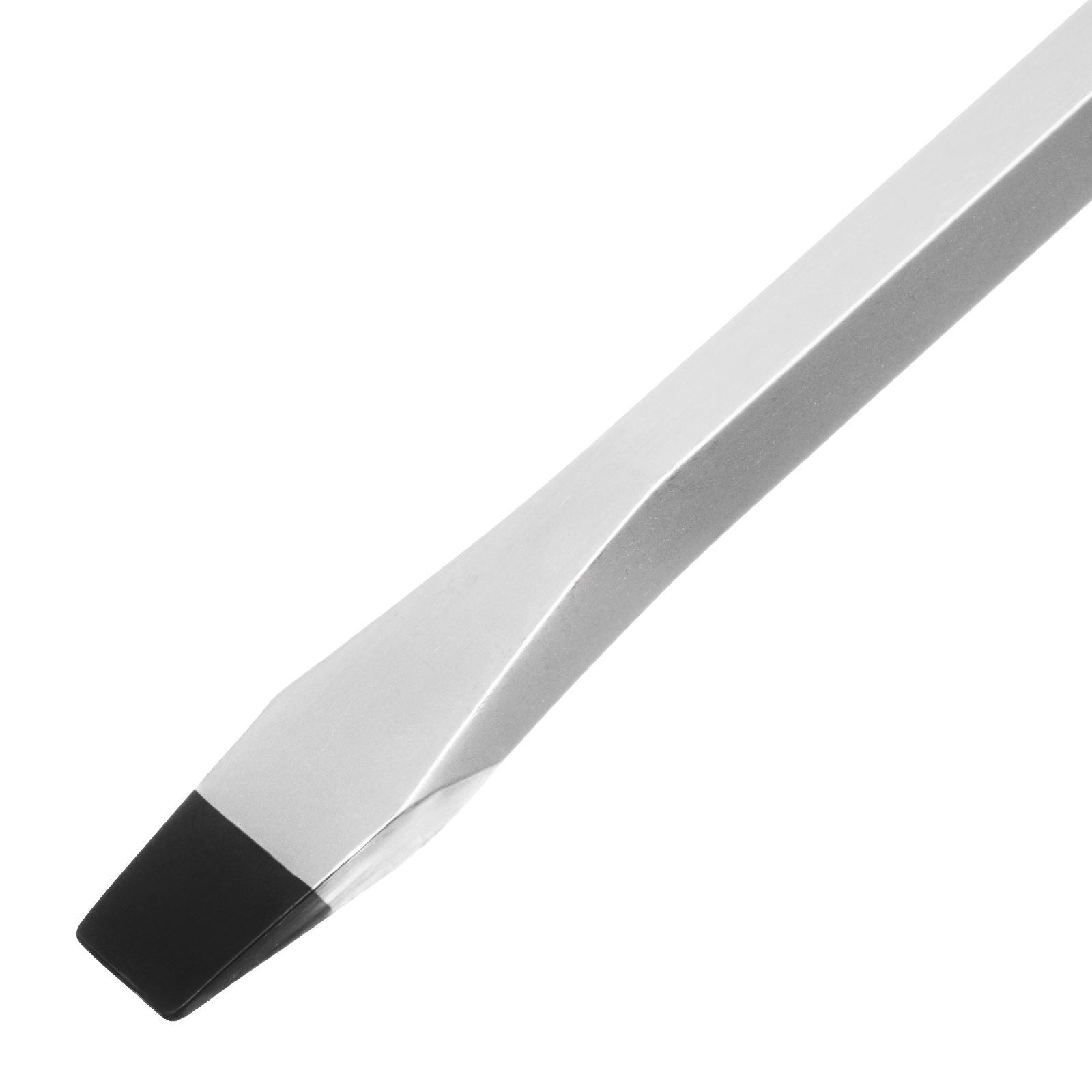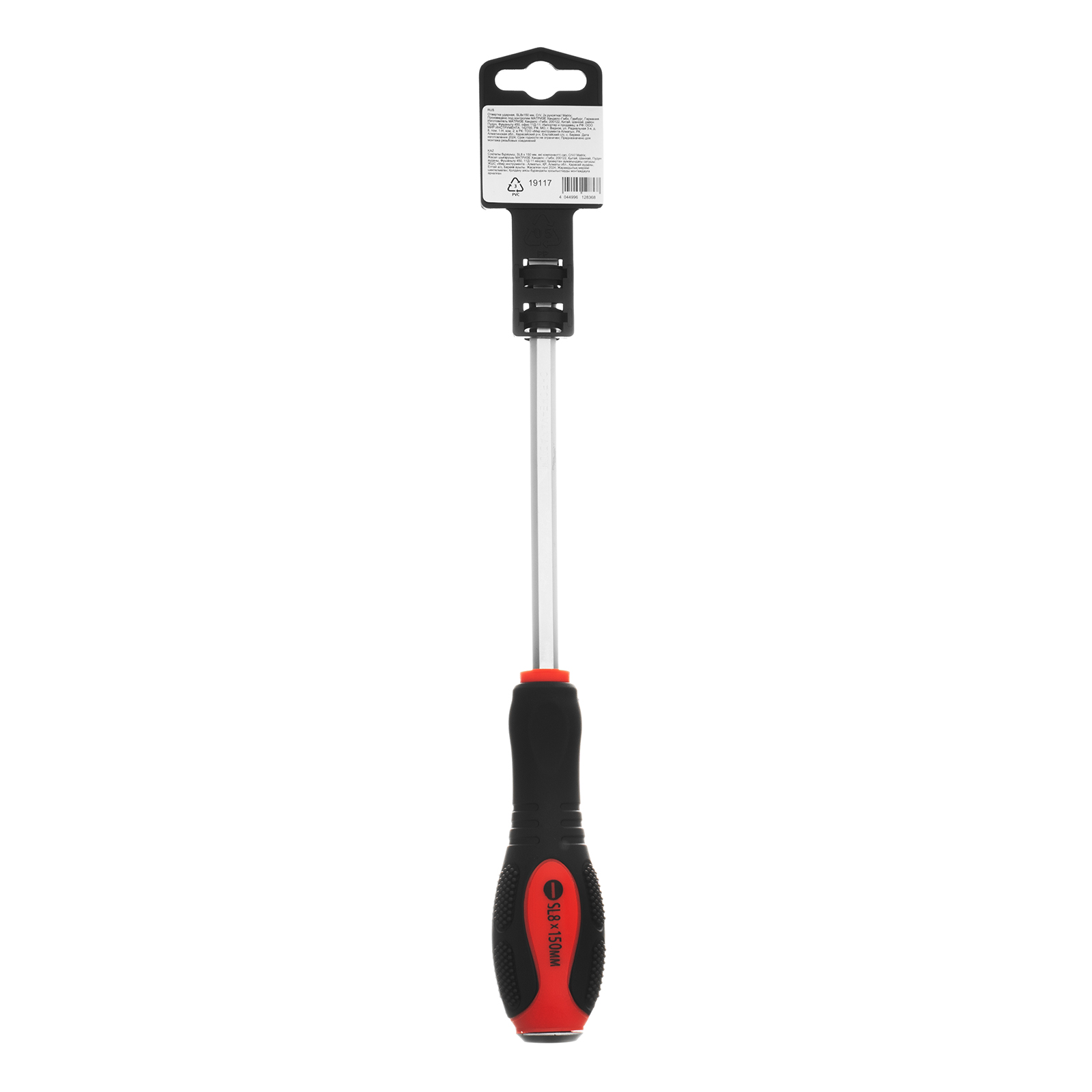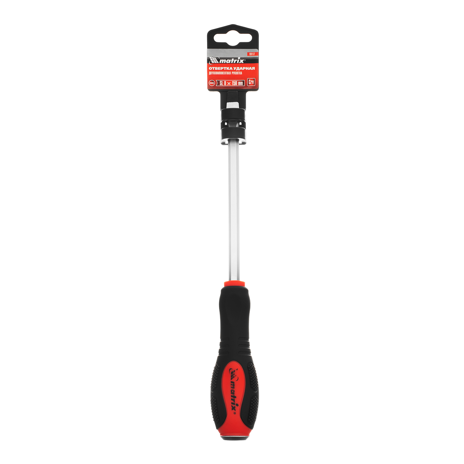 Ударная отвертка Matrix 19117, SL8 x 150 мм, с двухкомпонентной рукояткой, из стали CrV, применяется для монтажа крепежных элементов, а также демонтажа заржавевших или перетянутых резьбовых соединений типа Slotted. Металлический затыльник на рукоятке позволяет работать совместно с молотком или киянкой. Профессиональная отвертка будет полезна на строительной площадке, в мастерской, гараже, пригодится и дома. Стержень длиной 150 мм обеспечивает возможность работы с крепежом в углублениях.