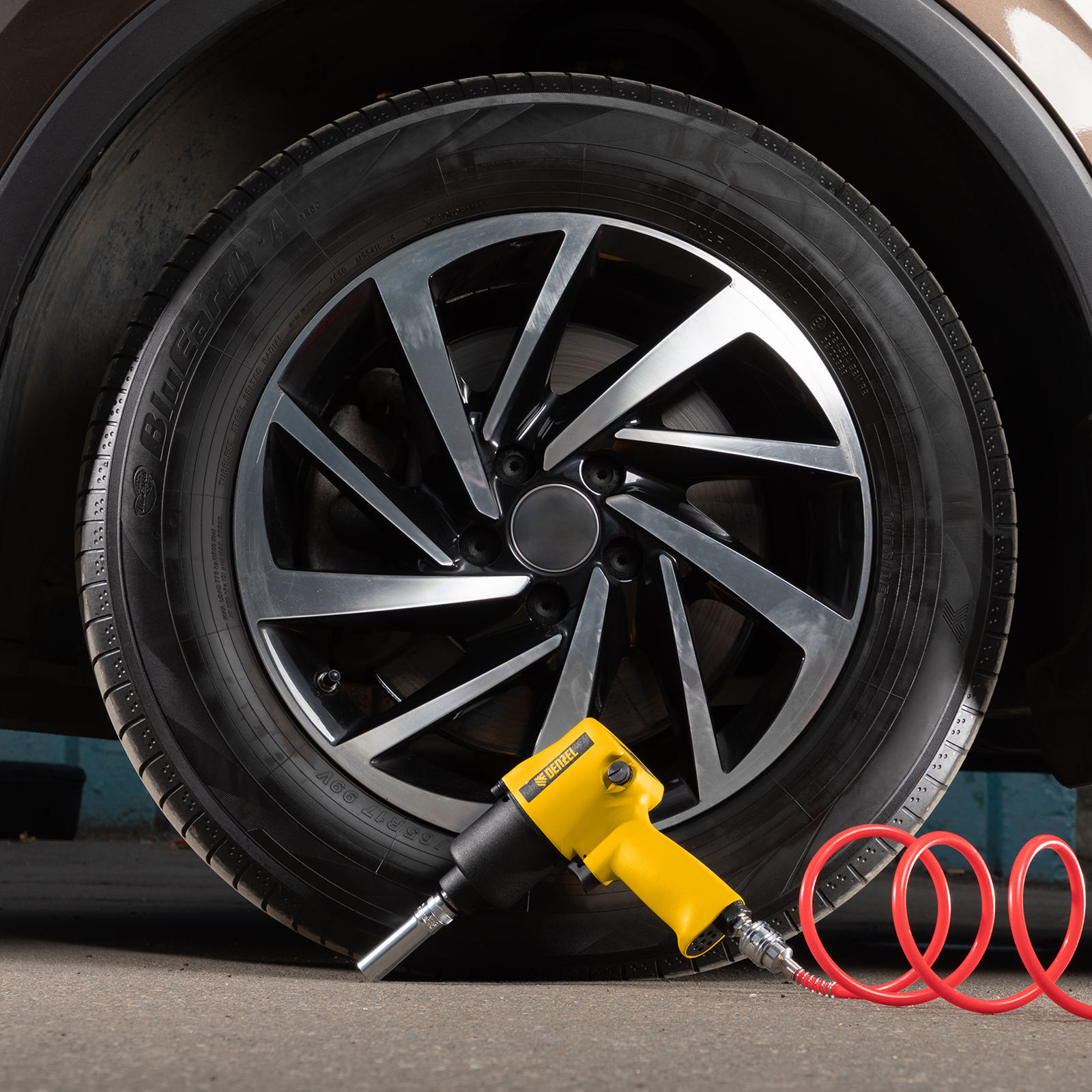 - Штуцер в комплекте — пневмогайковерт полностью готов к работе.