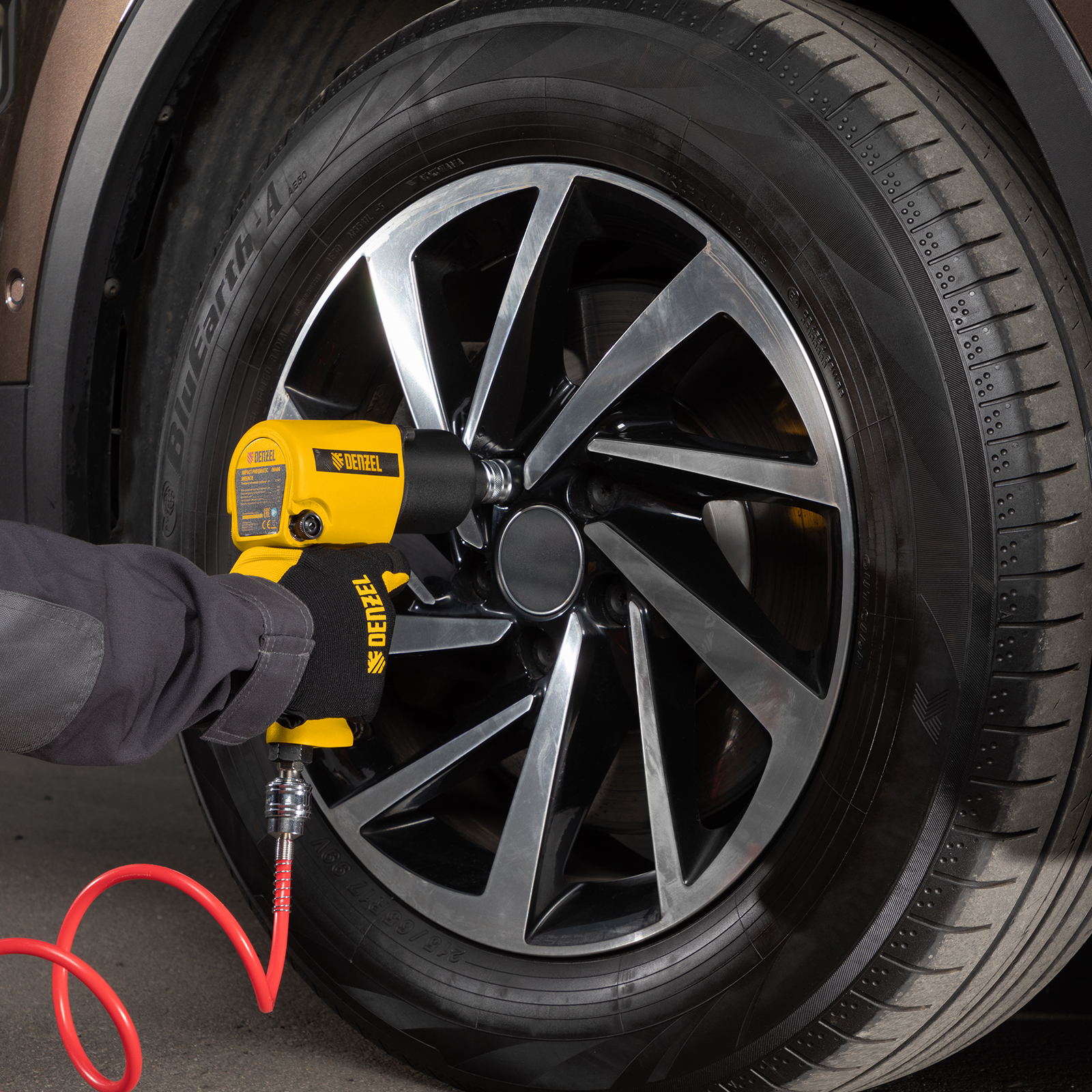 - Быстрая подготовка к работе — благодаря соединению рапид подключить гайковерт к компрессору можно за несколько секунд.
