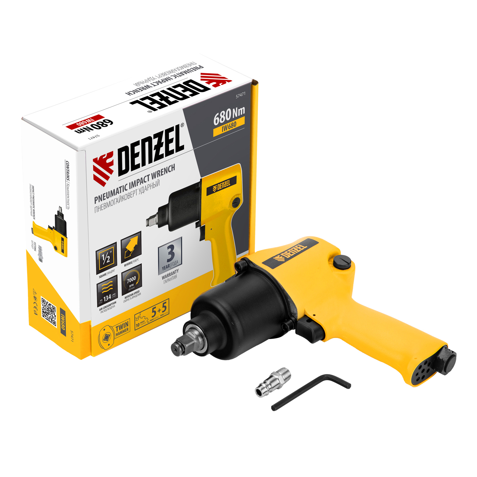 Ударный пневмогайковерт Denzel IW680 57471 с присоединительным квадратом 1/2″, максимальной скоростью вращения 7000 об/мин и крутящим моментом 680 Нм быстро справляется с закручиванием и откручиванием резьбовых крепежей, в том числе и с высоконагруженными соединениями. Крутящего момента достаточно для выполнения профессиональных задач в сборочном и сварочном цехах, на строительной площадке или в сервисе шиномонтажа. Гайковерт имеет 10 ступеней регулировки, что позволяет установить оптимальный режим работы в зависимости от типа крепежа и материала.