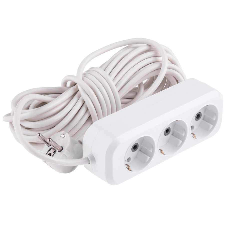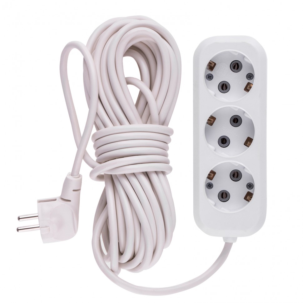 - Корпус удлинителя изготовлен из белого пластика, устойчивого к механическому воздействию и износу.