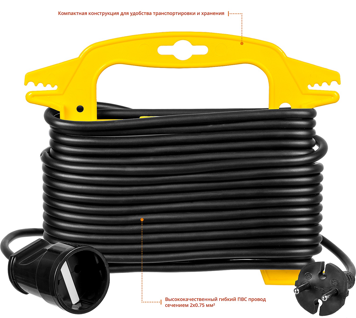 Удлинитель-шнур на рамке предназначен для подключения электрических приборов, которые находится на удалении от основного источника сети. Состоит из провода типа ПВС черного цвета и одной розетки. Облегчит работу на приусадебном участке, стройке или в быту.