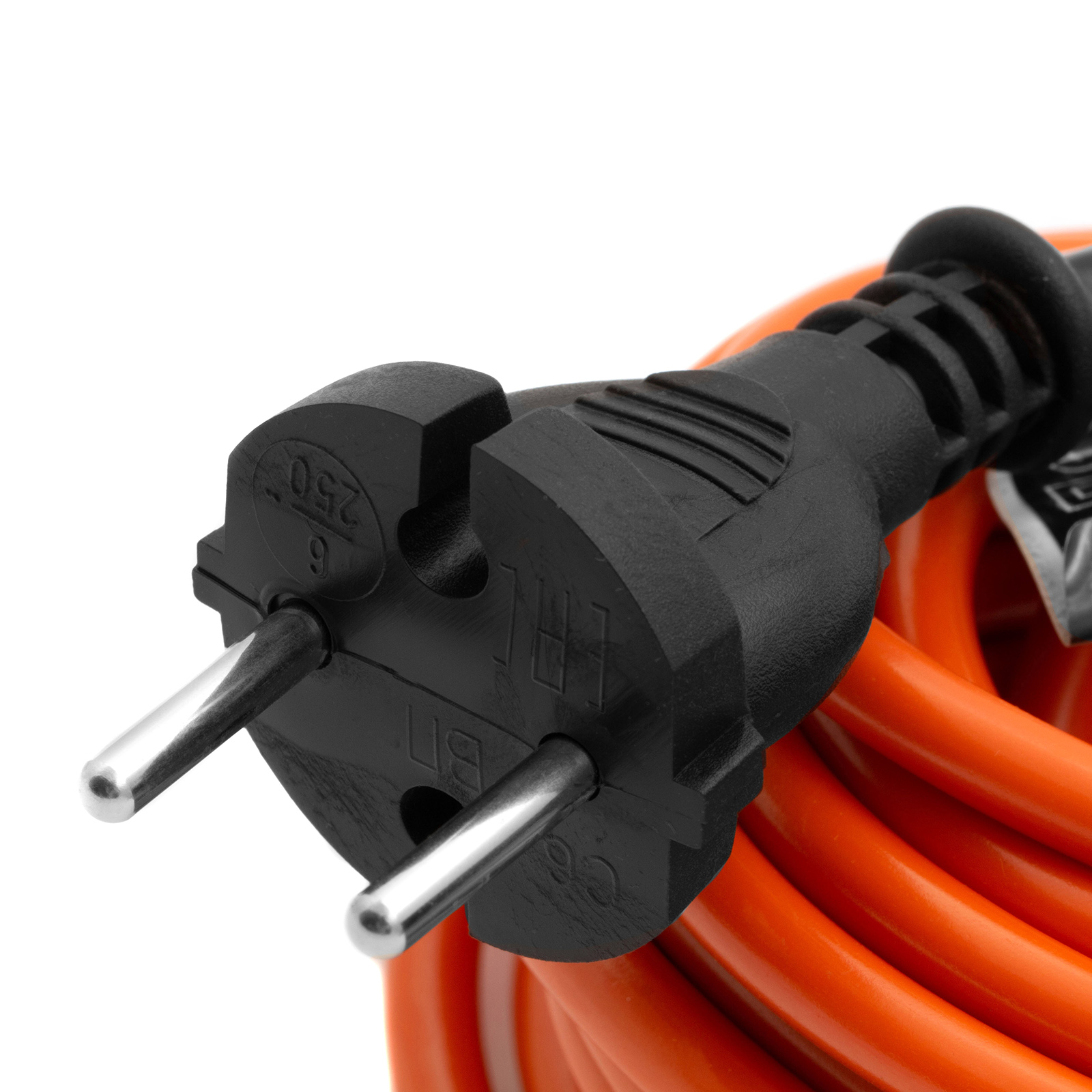 - Хорошая видимость — оранжевый удлинитель заметен даже в траве и среди строительных материалов.