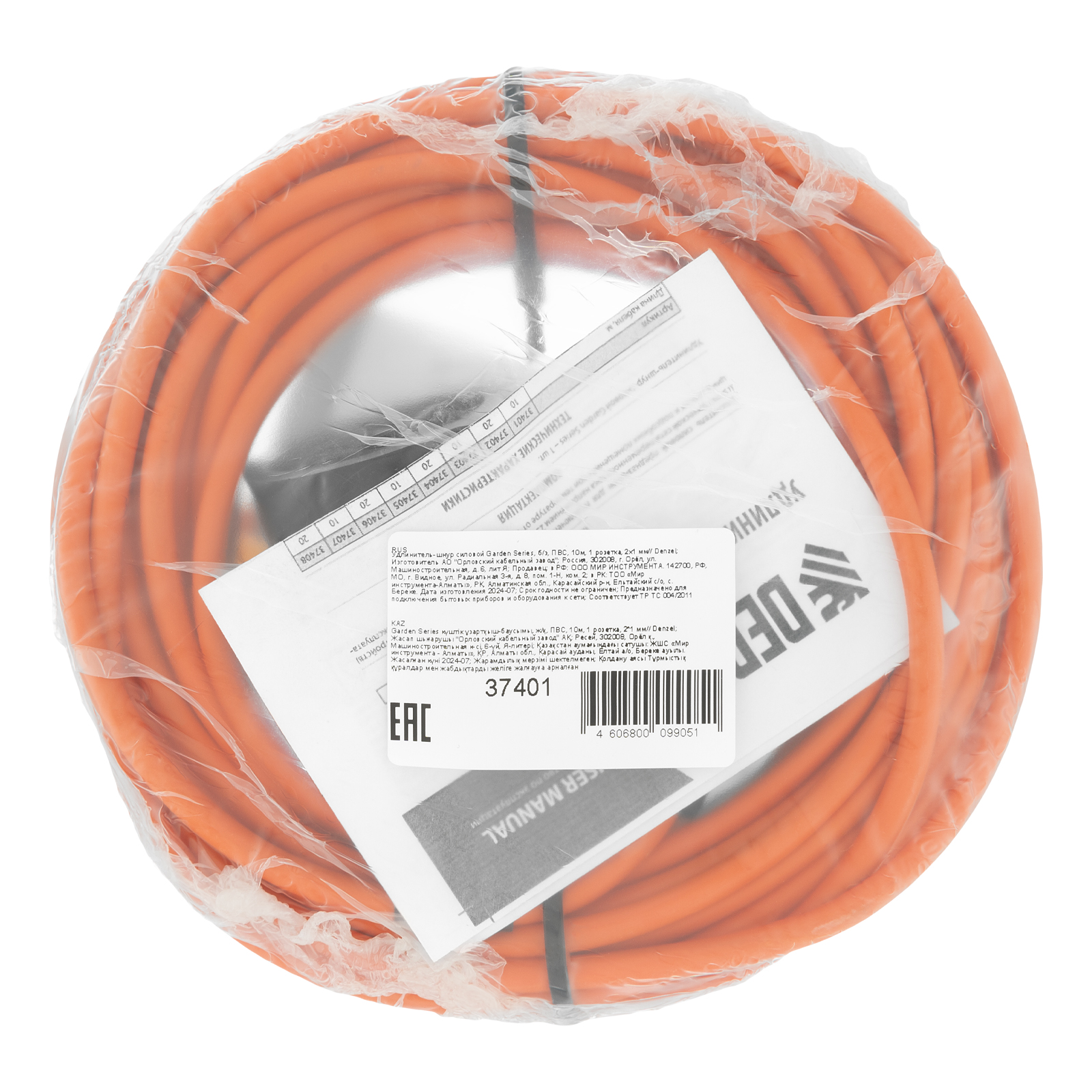 Силовой удлинитель-шнур Denzel Garden Series 37401 с кабелем ПВС сечением 2 x 1 мм, и 1 розеткой без заземления, позволяет подключать приборы к электросети на расстоянии до 10 м от стационарного источника питания. Максимальная мощность потребителя составляет 3500 Вт при полностью размотанном кабеле и 1750 Вт — при смотанном. Удлинитель может использоваться при температуре от +5 до +35 °C. Пригодится дома, на даче, в гараже.