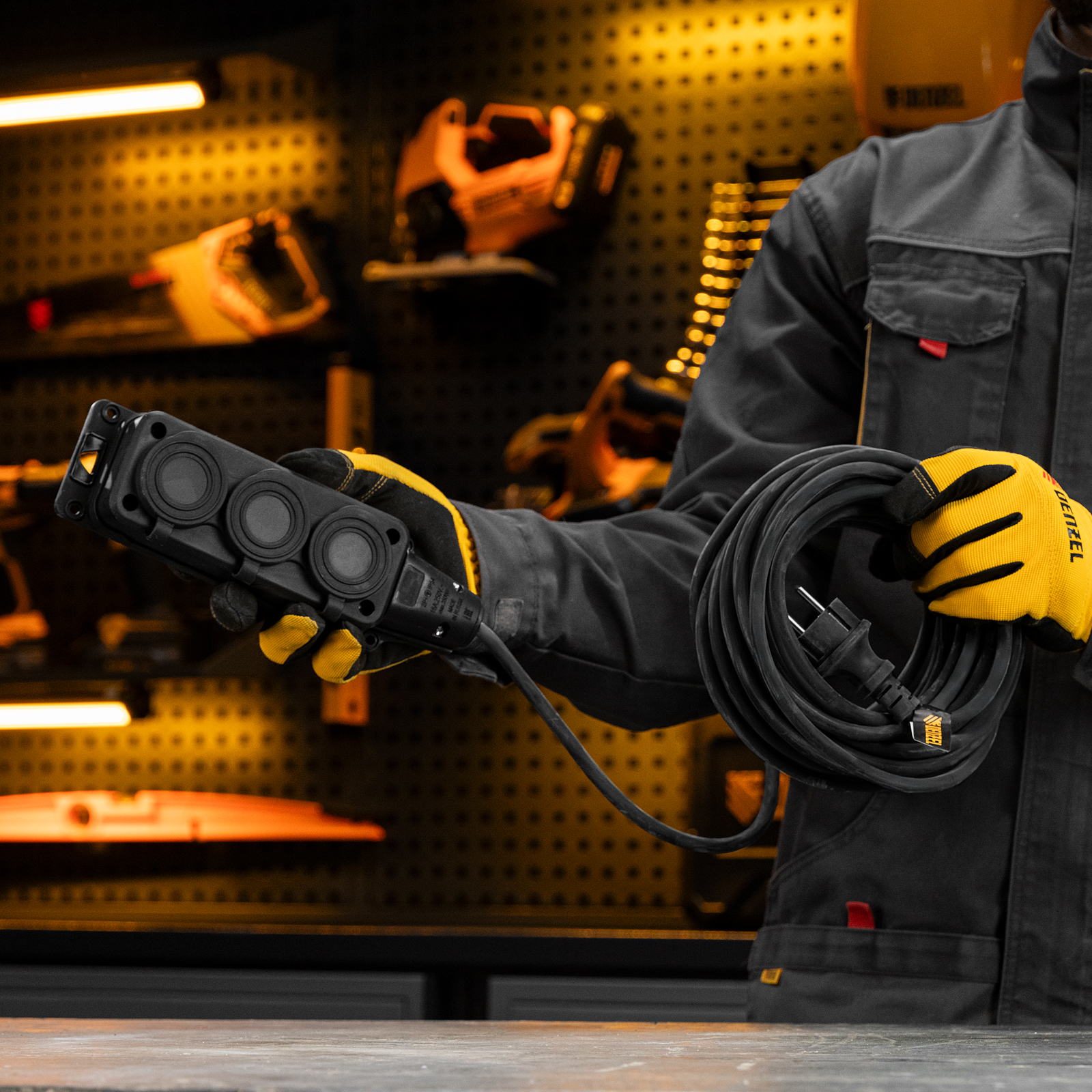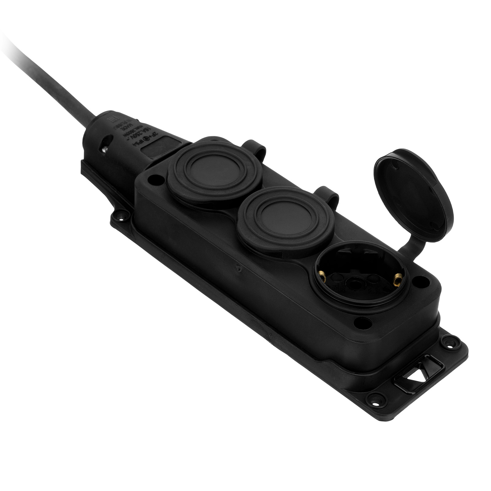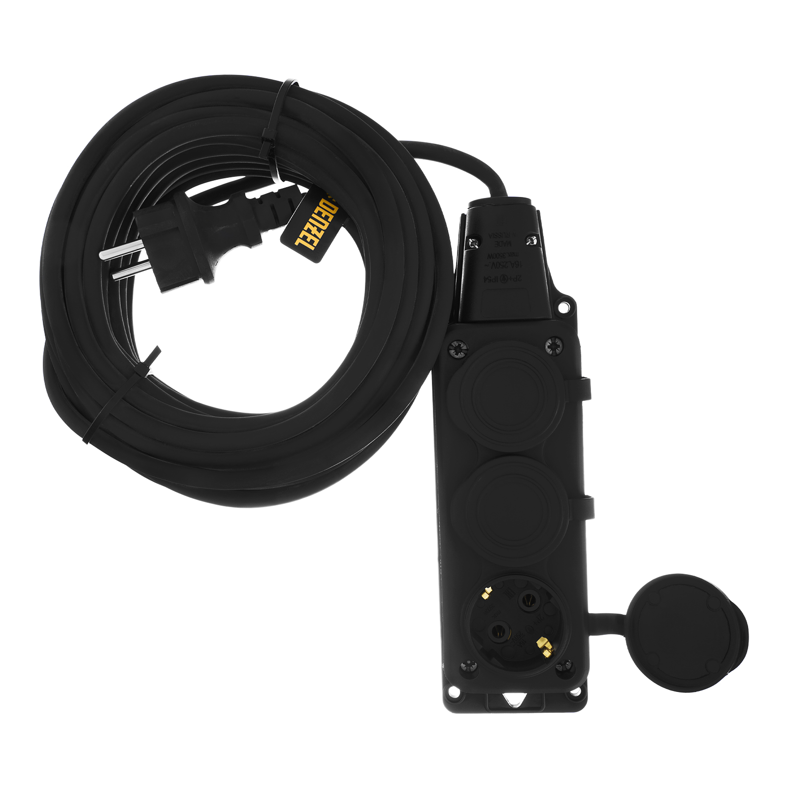 - Высокая степень защиты — удлинитель можно использовать даже во время выпадения осадков.