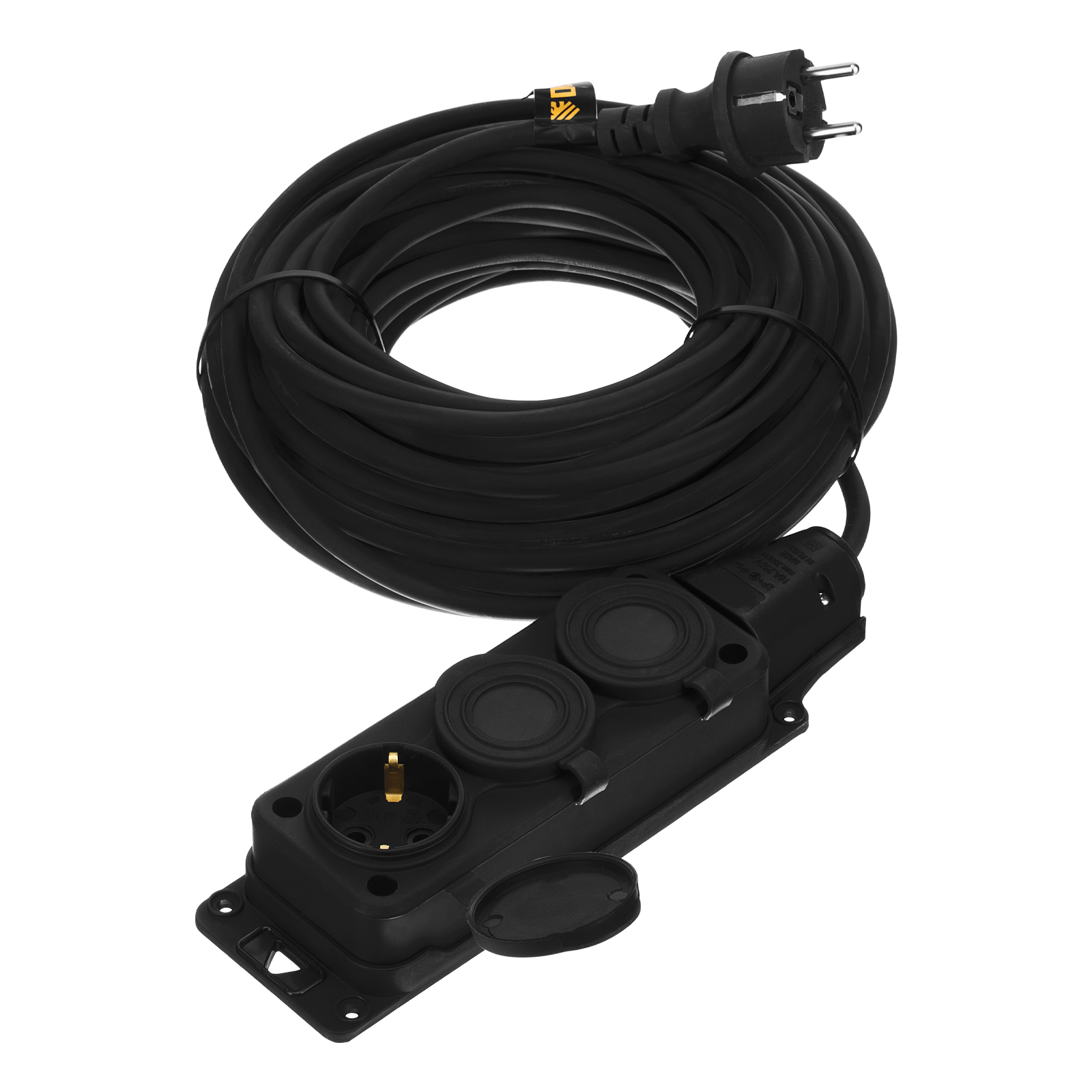 Силовой удлинитель-шнур Denzel Top Series 37422 с 3 розетками, с кабелем КГТТ сечением 3 x 1,5 мм и длиной 20 м, предназначен для подключения электроприборов на удалении от розетки. Суммарная мощность потребителей составляет 3680 Вт для полностью размотанного кабеля и 1840 Вт — для смотанного. Удлинитель подходит для подключения электроинструмента, будет полезен на строительной площадке и в быту.