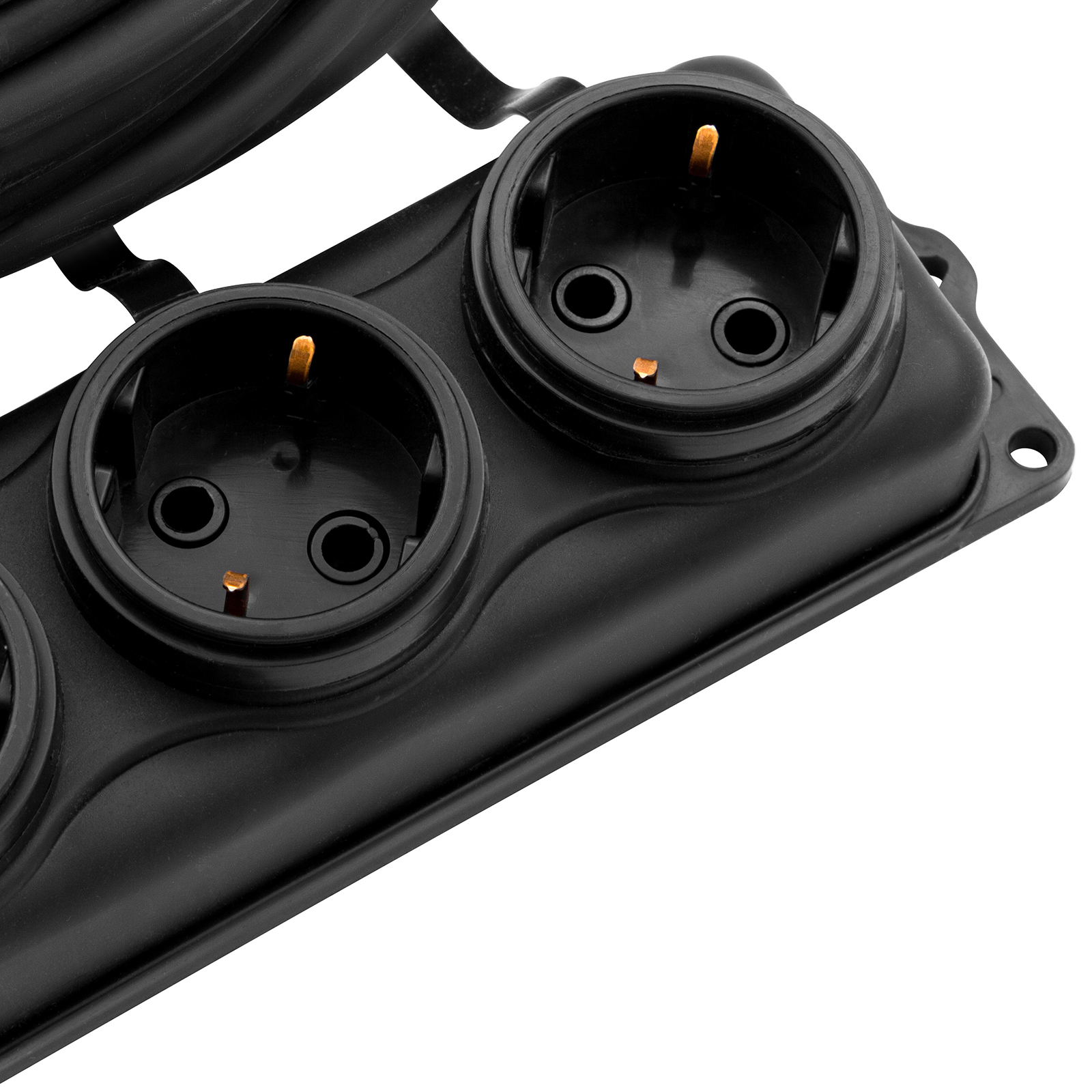 - Защита от пыли и влаги — розетки закрываются специальными крышками, удлинитель имеет степень защиты IP44.