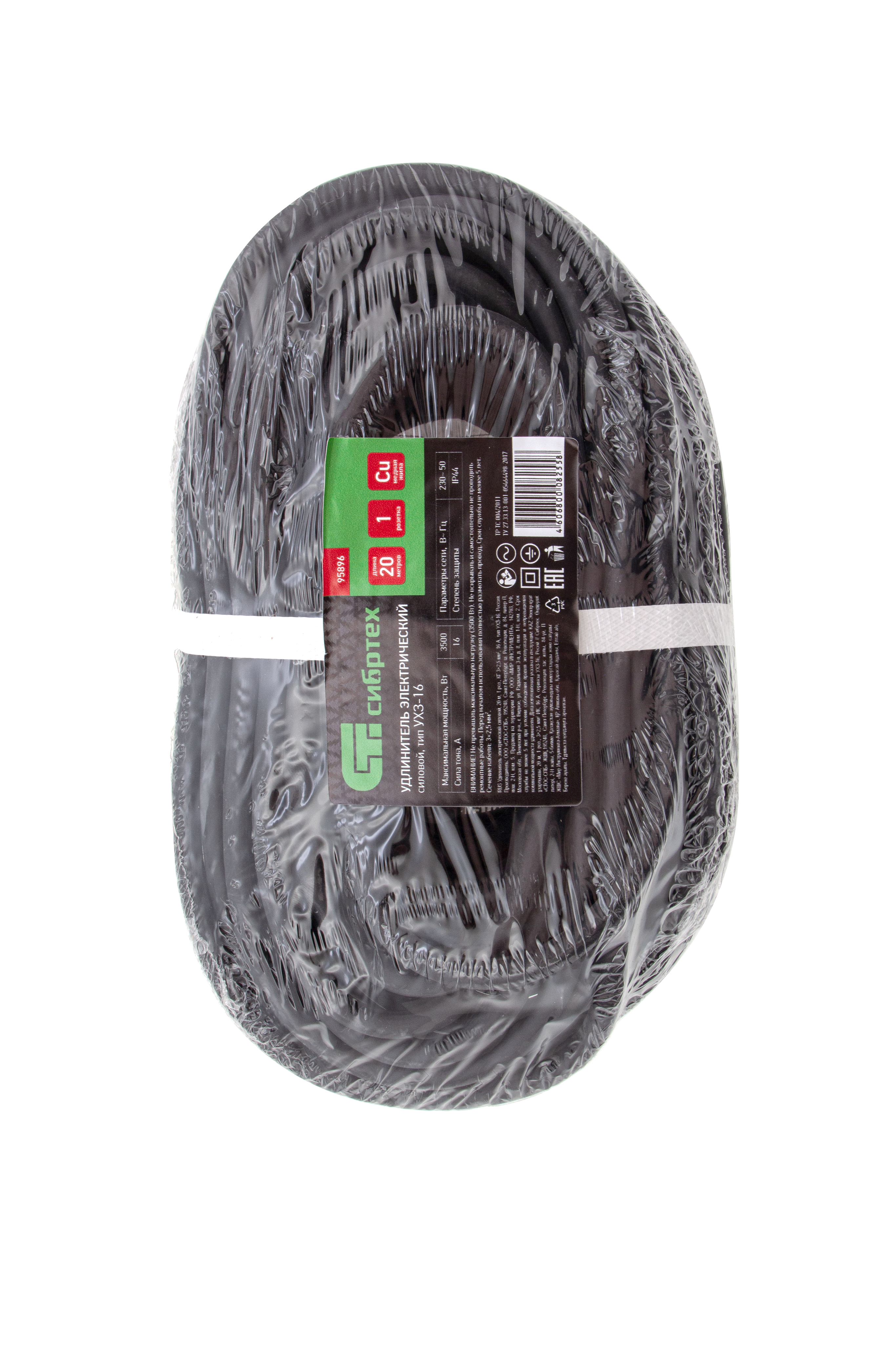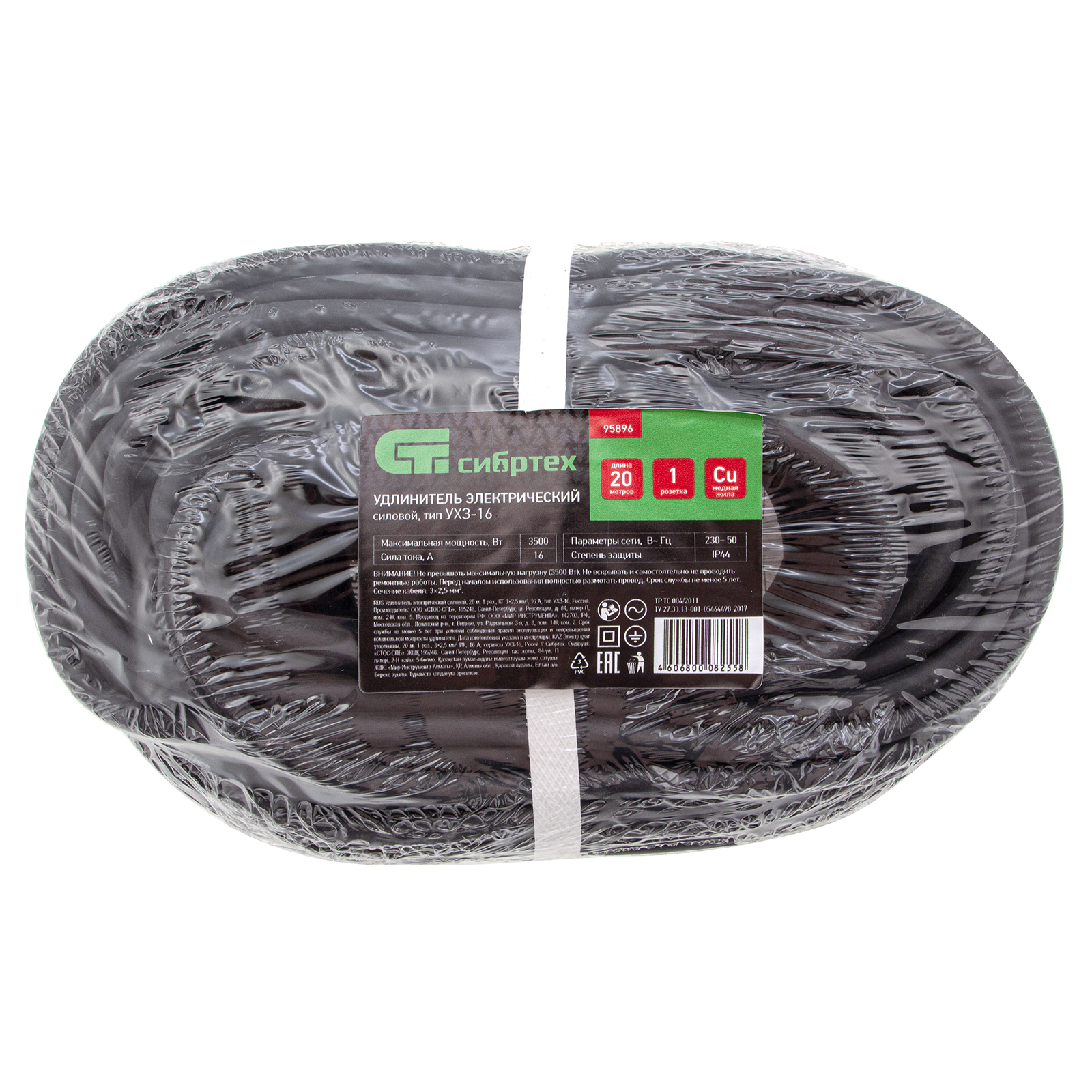 Силовой удлинитель Сибртех 95896, тип УХЗ-16, 16 А, тип кабеля КГ 3 х 2,5 мм, с 1 розеткой, позволяет подключать электрооборудование к сети на расстоянии до 20 м от стационарного источника электроснабжения. Медножильный кабель выдерживает нагрузку до 3500 Вт и рассчитан на длительное использование. Розетка закрывается защитной крышкой, предотвращающей попадание грязи и влаги на разъемы. Сетевой удлинитель используется в строительстве и на производстве.