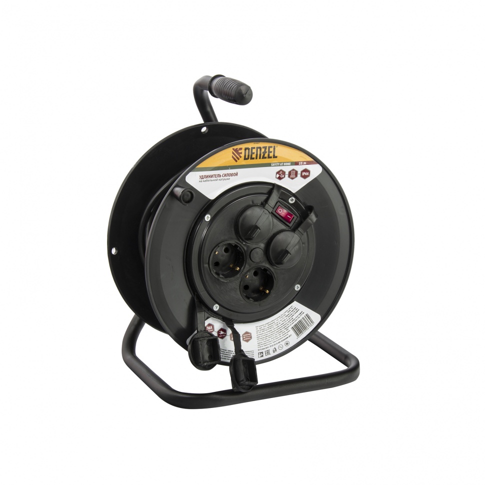 Силовой удлинитель на кабельной катушке Denzel 95907 серии УХз16, со степенью защиты IP44, рассчитан на силу тока 16 А, имеет 4 розетки с крышкой и позволяет подключать электрооборудование к источнику питания, расположенному на расстоянии до 25 м. Позволяет подключить 4 инструмента суммарной мощностью не более 3500 Вт. Удобная рукоятка позволяет быстро разматывать и сматывать кабель. Розетки с заземляющими контактами защищают пользователя от поражения электрическим током. Крышки розеток предотвращают попадание пыли и влаги на разъемы. Удлинитель пригодится на строительной площадке, а также будет полезен дома, на даче или в гараже.